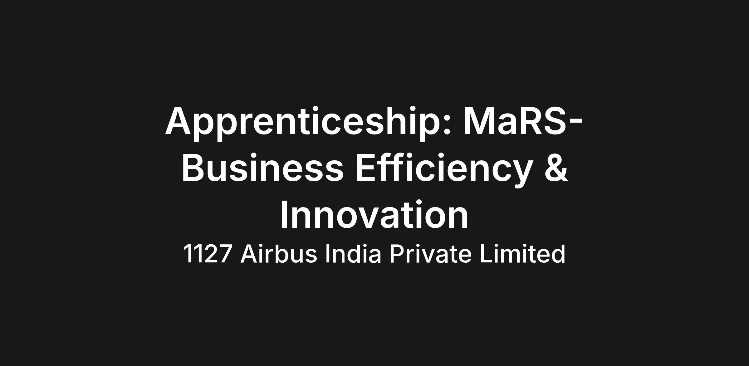 An apprenticeship opportunity titled : « Business Efficiency & Innovation » has just opened at Airbus India located in Bangalore.