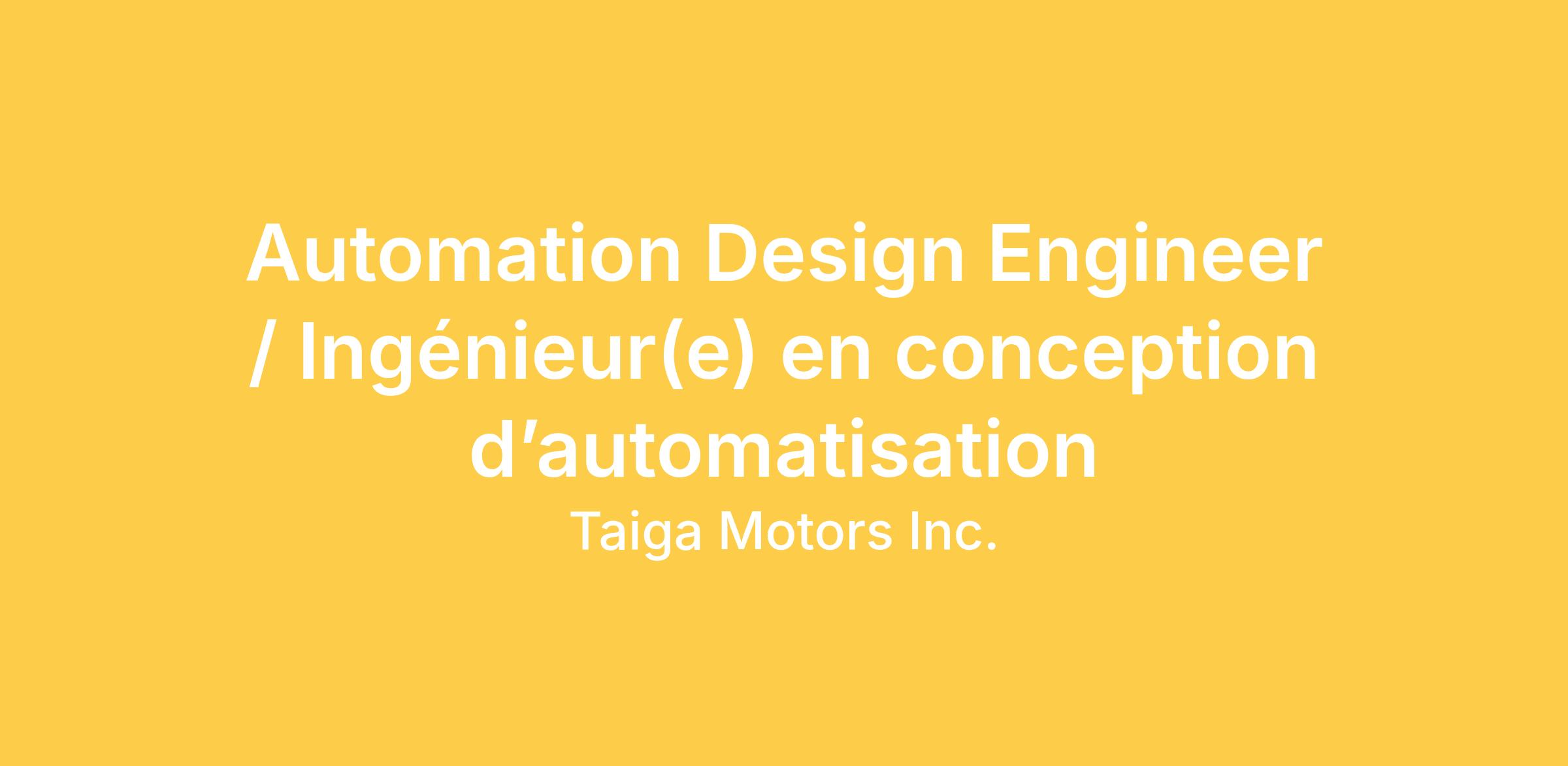 Automation Design Engineer / Ingénieur(e) en conception d’automatisation