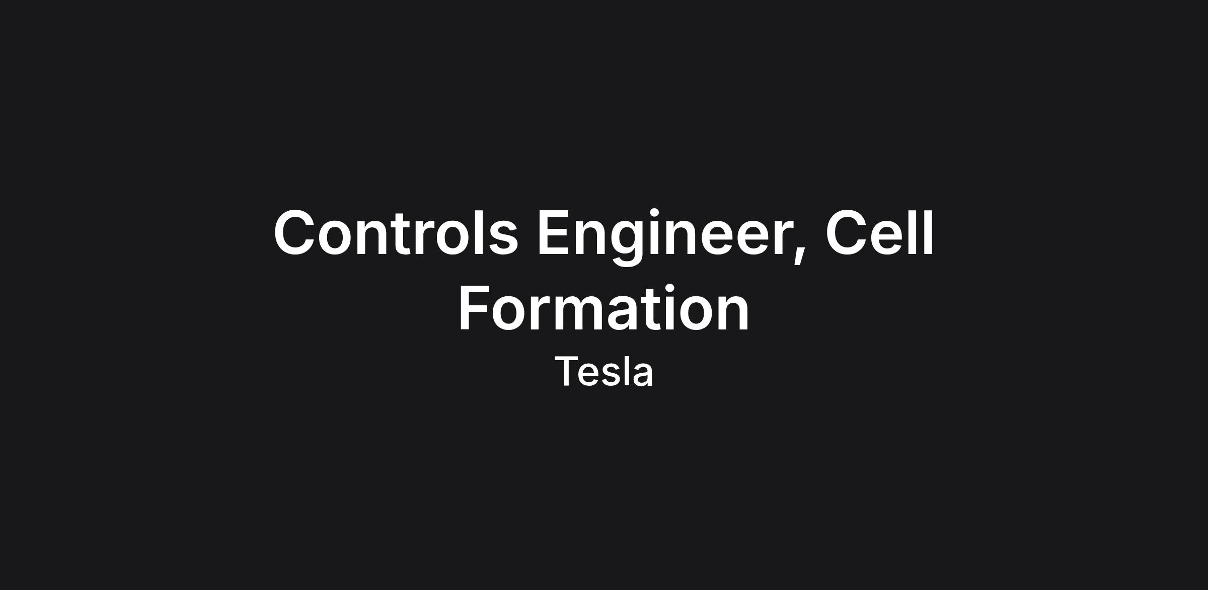 The 4680 Cell is one of the most complex and challenging components designed and manufactured at Tesla. This is an exciting opportunity to build a world-class manufacturing facility right here in Austin. Tesla is a demanding and fast-paced environment where you will work on a critical subsystem of incredibly exciting products. Tesla is seeking a highly motivated Controls Engineer to support the ramp of the factory, and contribute to the design of robust and stable equipment. This Engineer will be at the forefront of controls technology and will be responsible for the advanced cell manufacturing equipment that produces Tesla’s cutting-edge batteries. The Controls Engineer will also work with cross-functional teams throughout the entire lifecycle of the product and processes.