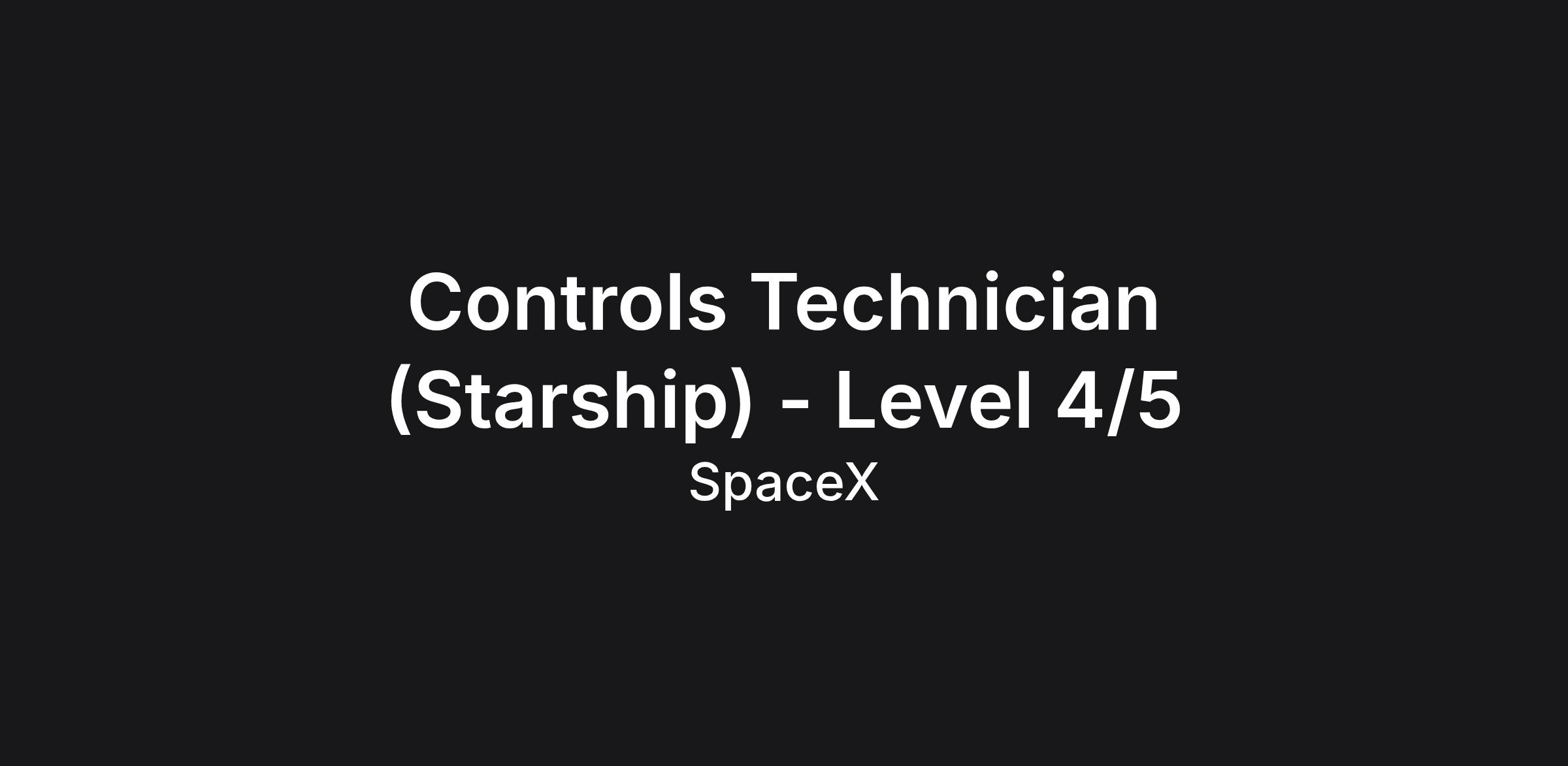 SpaceX was founded under the belief that a future where humanity is out exploring the stars is fundamentally more exciting than one where we are not. Today SpaceX is actively developing the technologies to make this possible, with the ultimate goal of enabling human life on Mars. CONTROLS TECHNICIA