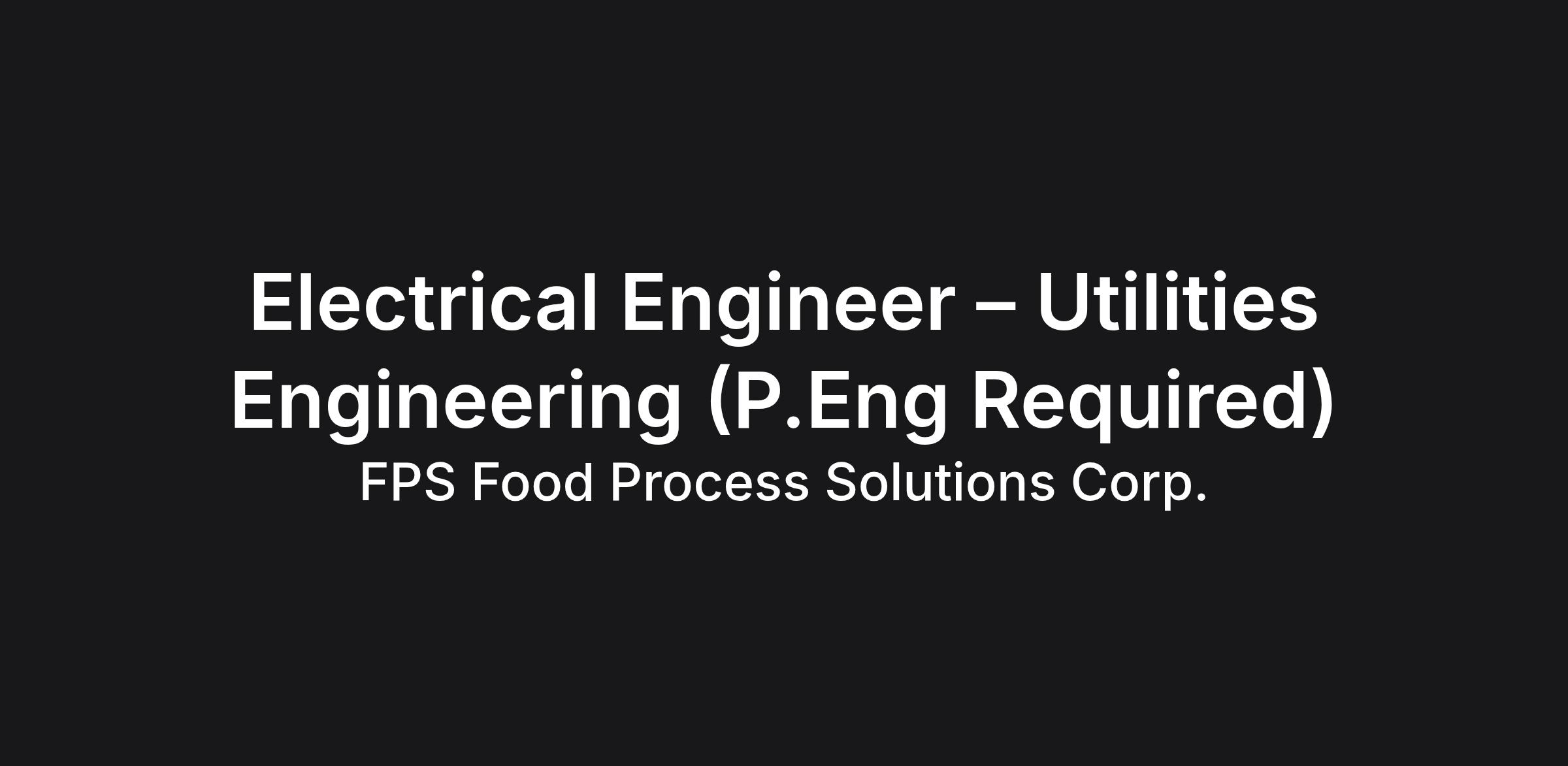 FPS Food Process Solutions Corporation is an equal opportunity employer, and we thank you for your interest in the position. Only those candidates who match the requirements and are eligible to work in Canada will be contacted / shortlisted.