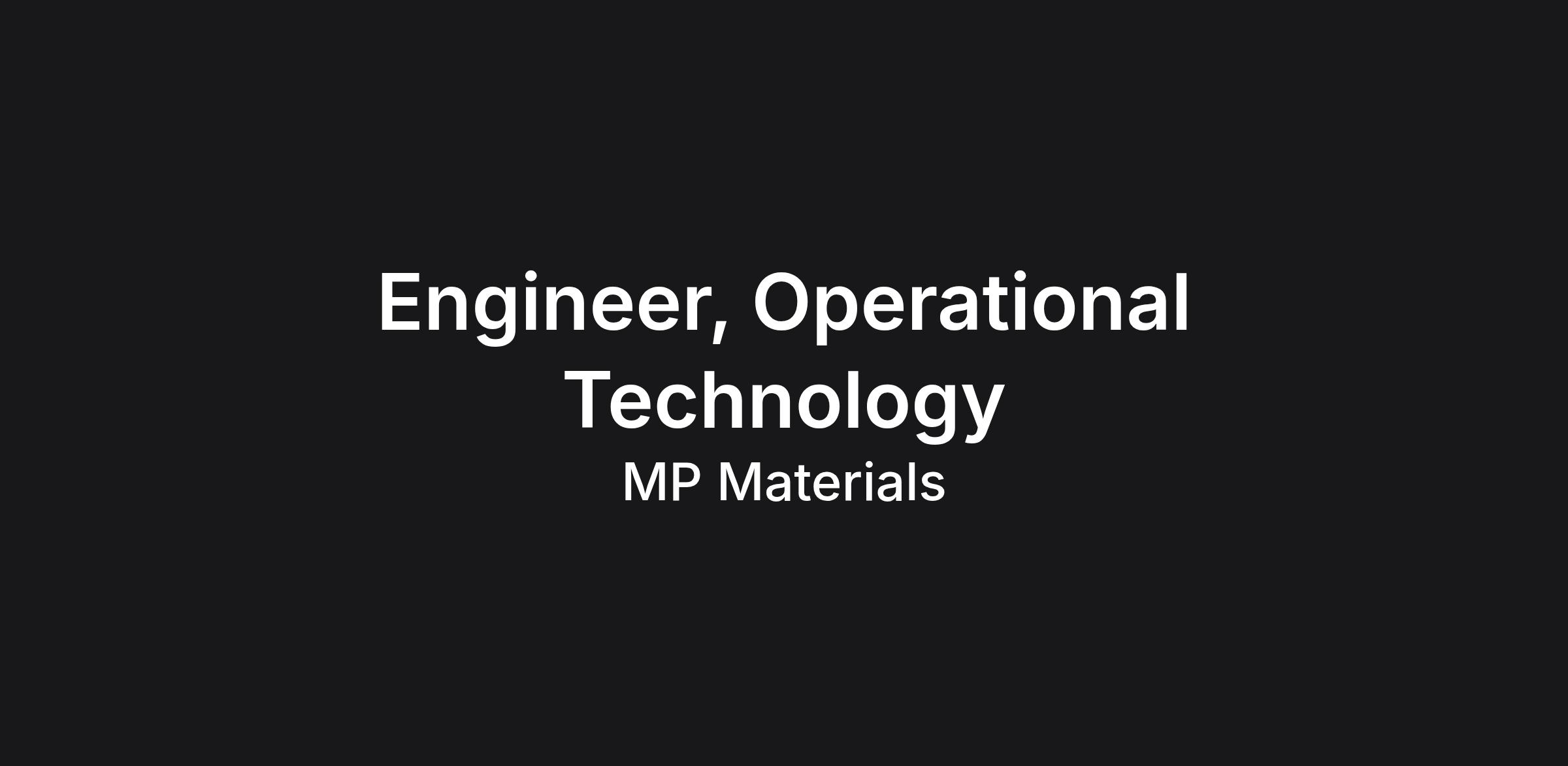 MP Materials (NYSE: MP) is rebuilding American industrial capability for a new era of autonomy, robotics, and electrification. We are the only U.S. company with a fully integrated rare earth supply chain—from mining and refining to advanced metal and magnet manufacturing. Our products include both the critical materials used to make permanent magnets and the finished magnets themselves—enabling next-generation technologies in robotics, automation, aerospace, transportation, defense, and energy systems. These materials are the foundation of physical AI—the convergence of computation, movement, and control. We hire ambitious, mission-driven people who want to tackle complex challenges and shape the future of strategic industries. Our culture is rooted in teamwork, resiliency, and integrity, with a deep commitment to operational excellence and national purpose. MP is rapidly evolving from a materials producer into a leading U.S. manufacturer—and our people are driving that transformation.