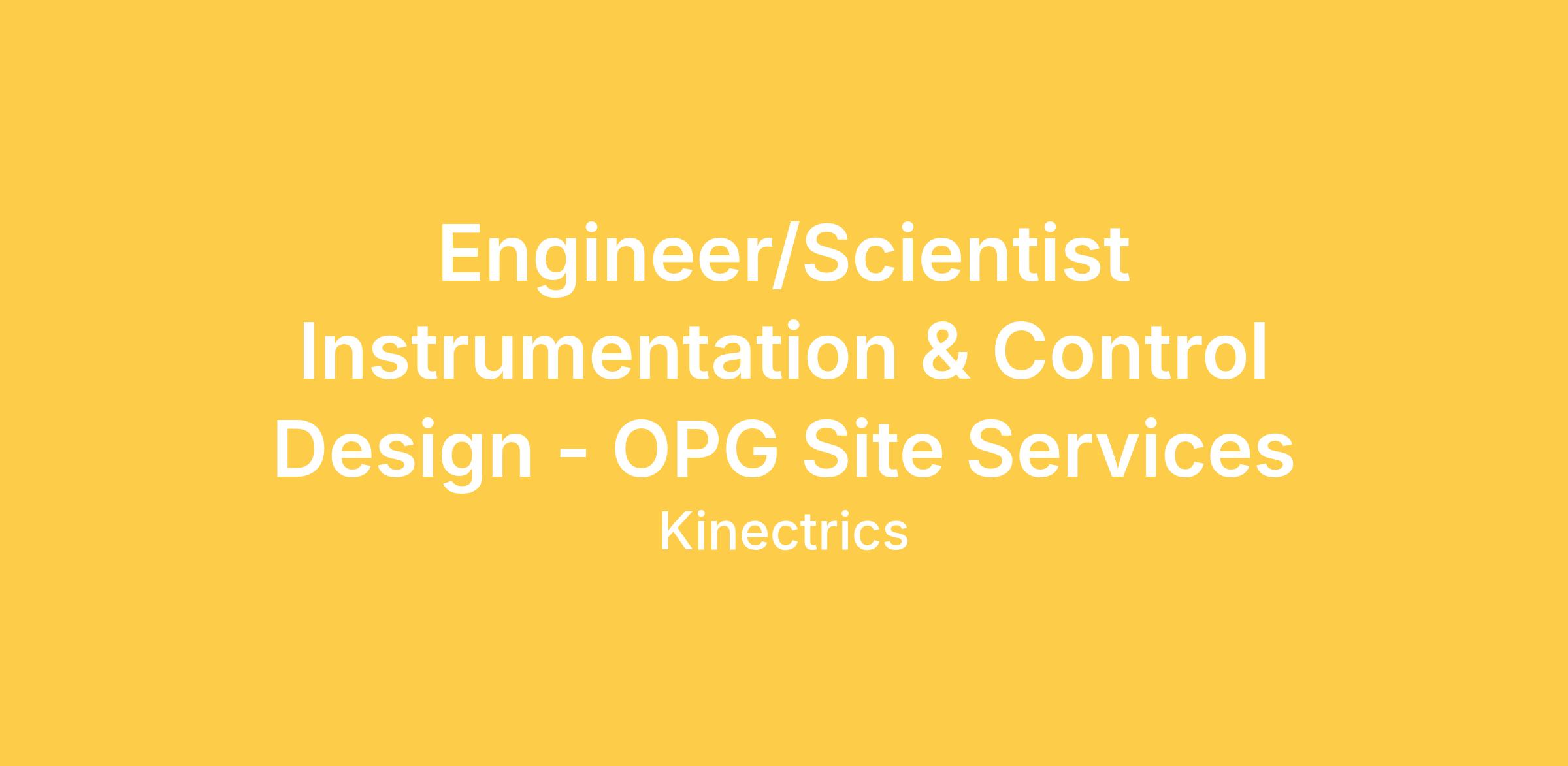 Reports to: Section Manager, Site Engineering (Electrical, Instrumentation & Control), OPG Site Services