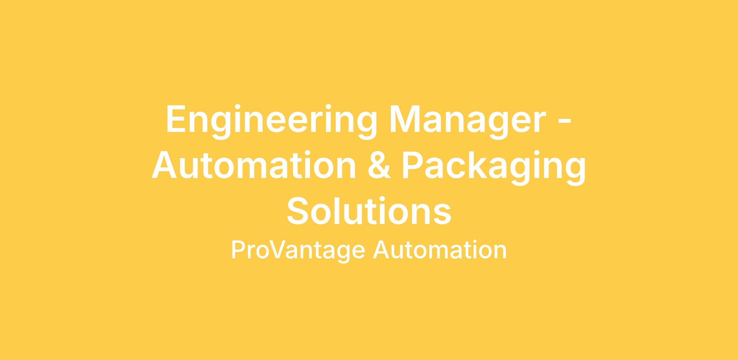 Engineering Manager – Automation & Packaging Solutions