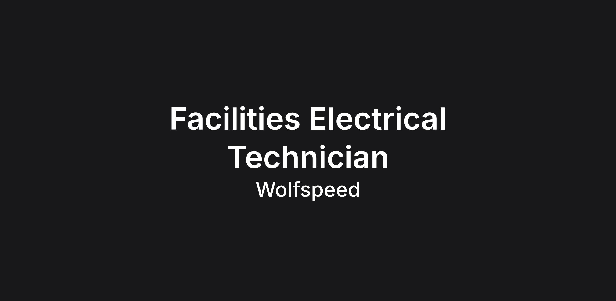 Here’s the Gist: Wolfspeed is seeking a Facilities Electrical Technician to join the Facilities Maintenance Team at our new location in Siler City, NC – the world’s largest silicon carbide materials factory.