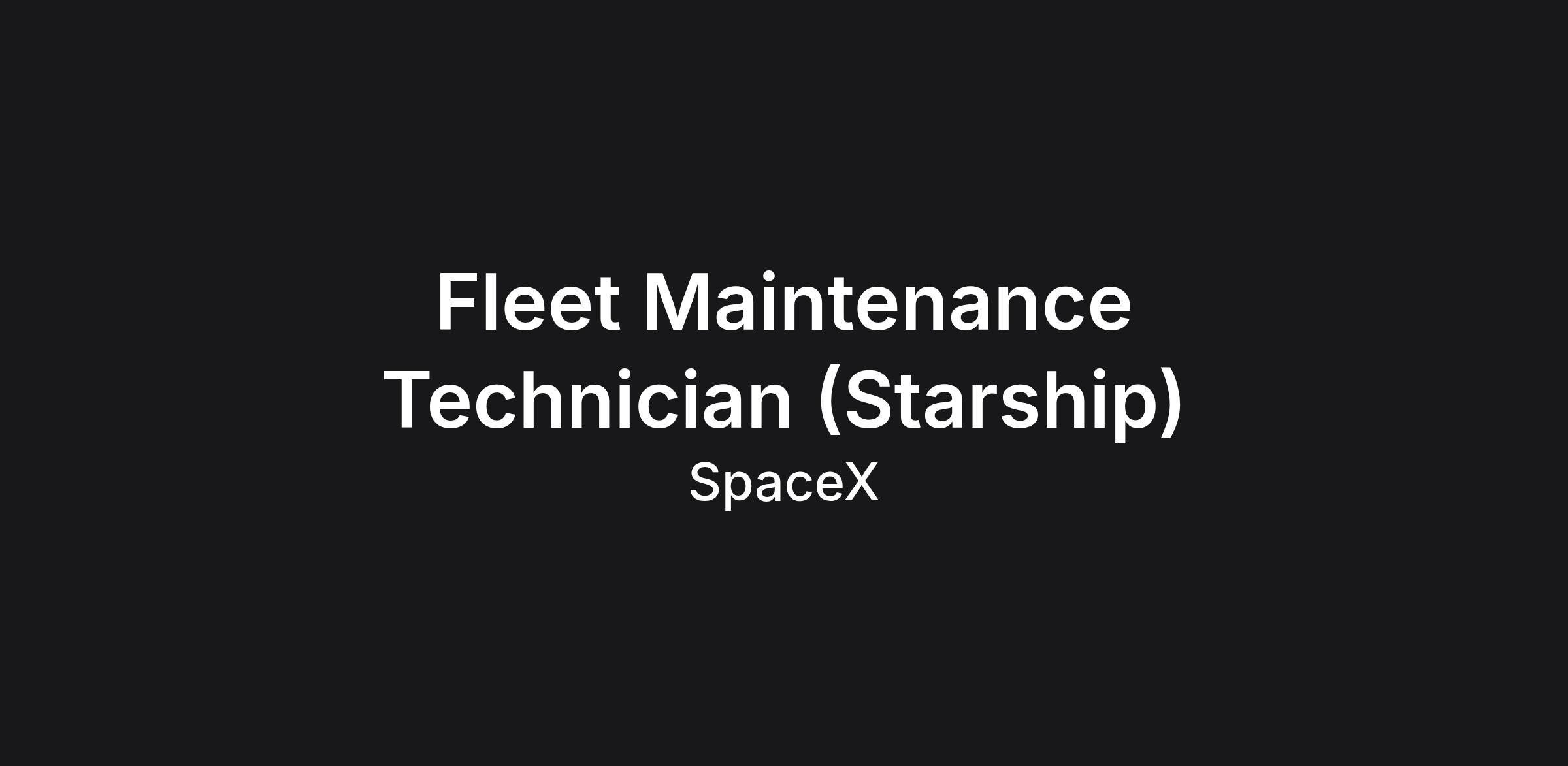 SpaceX was founded under the belief that a future where humanity is out exploring the stars is fundamentally more exciting than one where we are not. Today SpaceX is actively developing the technologies to make this possible, with the ultimate goal of enabling human life on Mars. FLEET MAINTENANCE TECHNICIAN (STARSHIP) SpaceX is seeking a skilled Fleet Maintenance Technician to support maintenance operations at the Starship production site in Boca Chica. The Fleet Maintenance Technician will perform repairs and preventative maintenance on a diverse range of equipment critical to Starship production, including automotive assets, heavy transit vehicles, heavy industrial lifting equipment, diesel engines, self-propelled modular transporters (SPMTs), cranes, small engines, and various industrial machinery. This role ensures equipment reliability and operational readiness to support the fast-paced demands of Starship manufacturing.