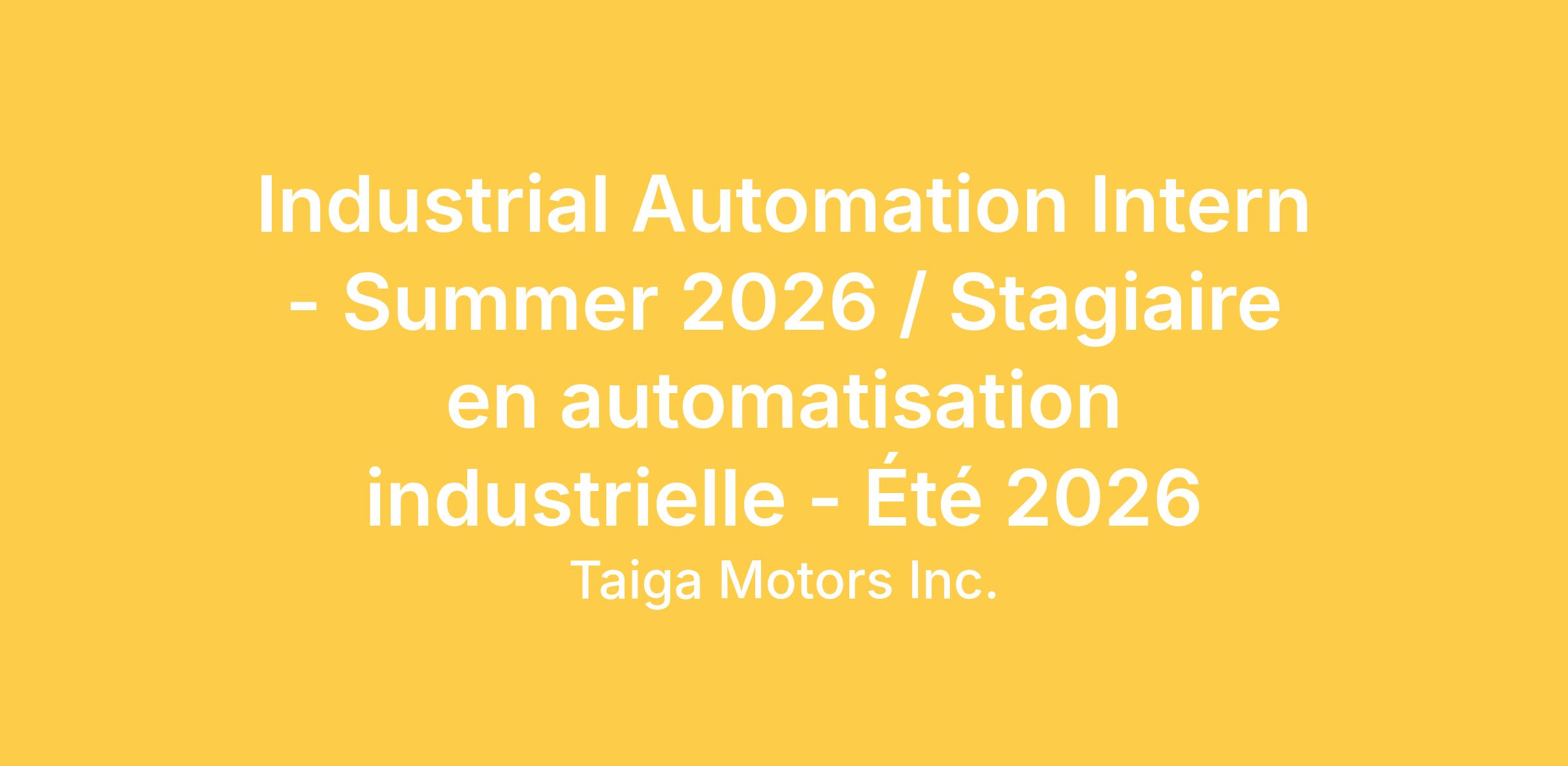Industrial Automation Intern - Summer 2026 / Stagiaire en automatisation industrielle - Été