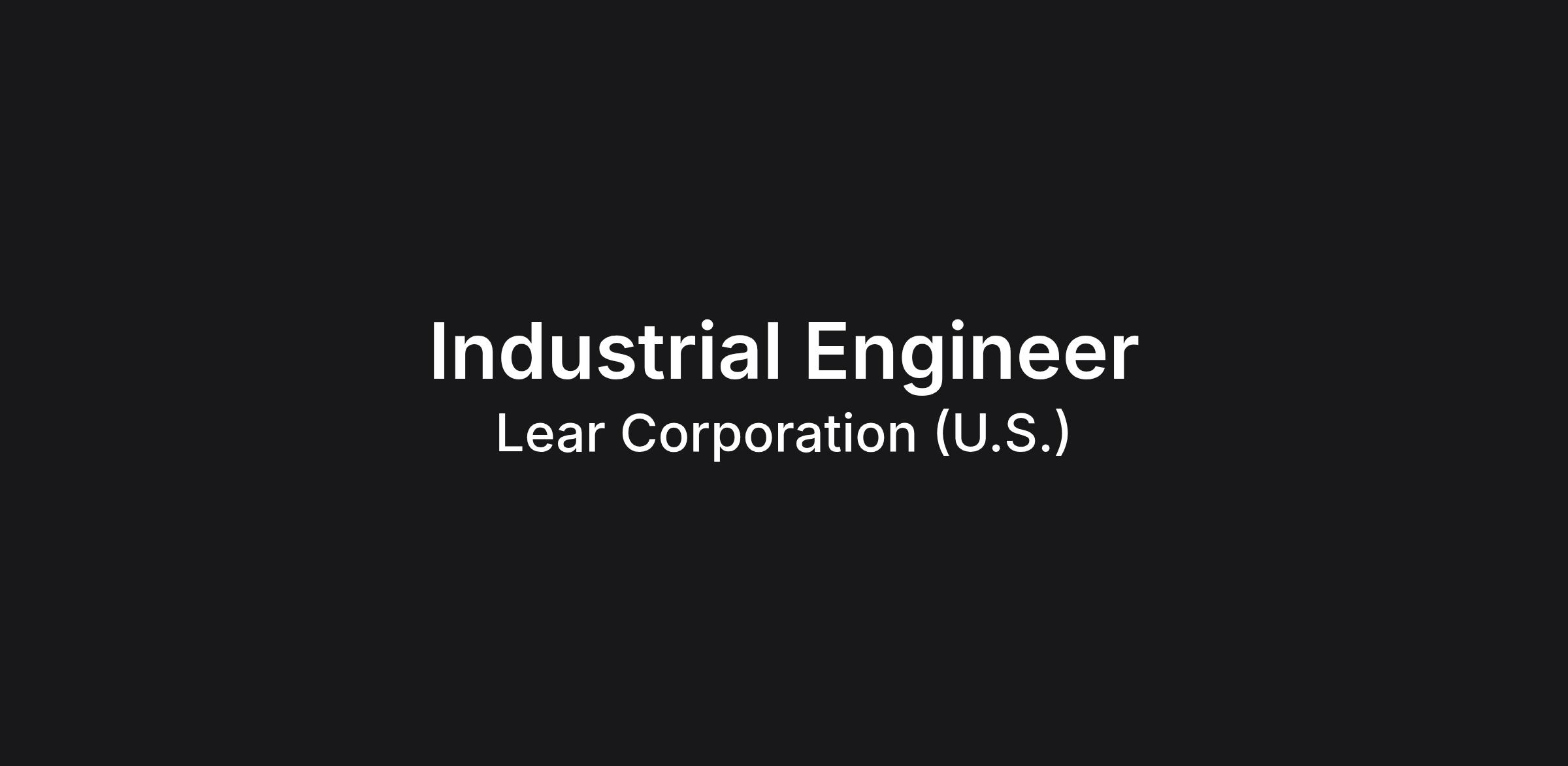 As a member of the Lear Hammond Engineering Department, the Industrial Engineer I will be responsible for all plant engineering functions and overall plant operational support.