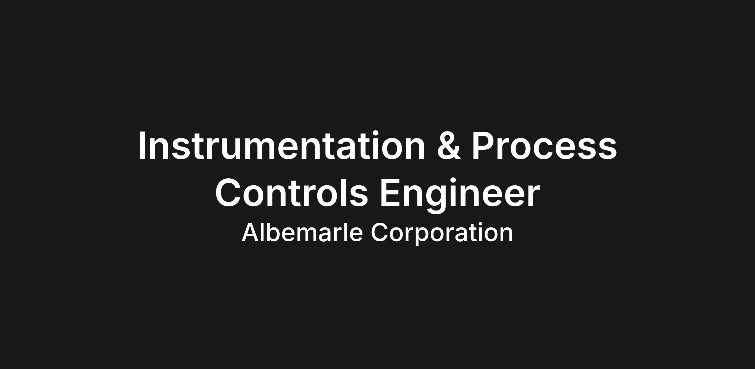 Job Description Albemarle is hiring for a Instrumentation & Process Controls Engineer. This position is located in our King's Mountain, North Carolina site. The Instrumentation & Process Controls Engineer is accountable for enabling electrical & instrumentation reliability on site and providing engineering support to the E&I technicians. This includes access to and troubleshooting of control systems, introduction of improved predictive and preventive tools and methodologies for instrumentation, access to accurate instrumentation and control systems information and expert troubleshooting as needed.
