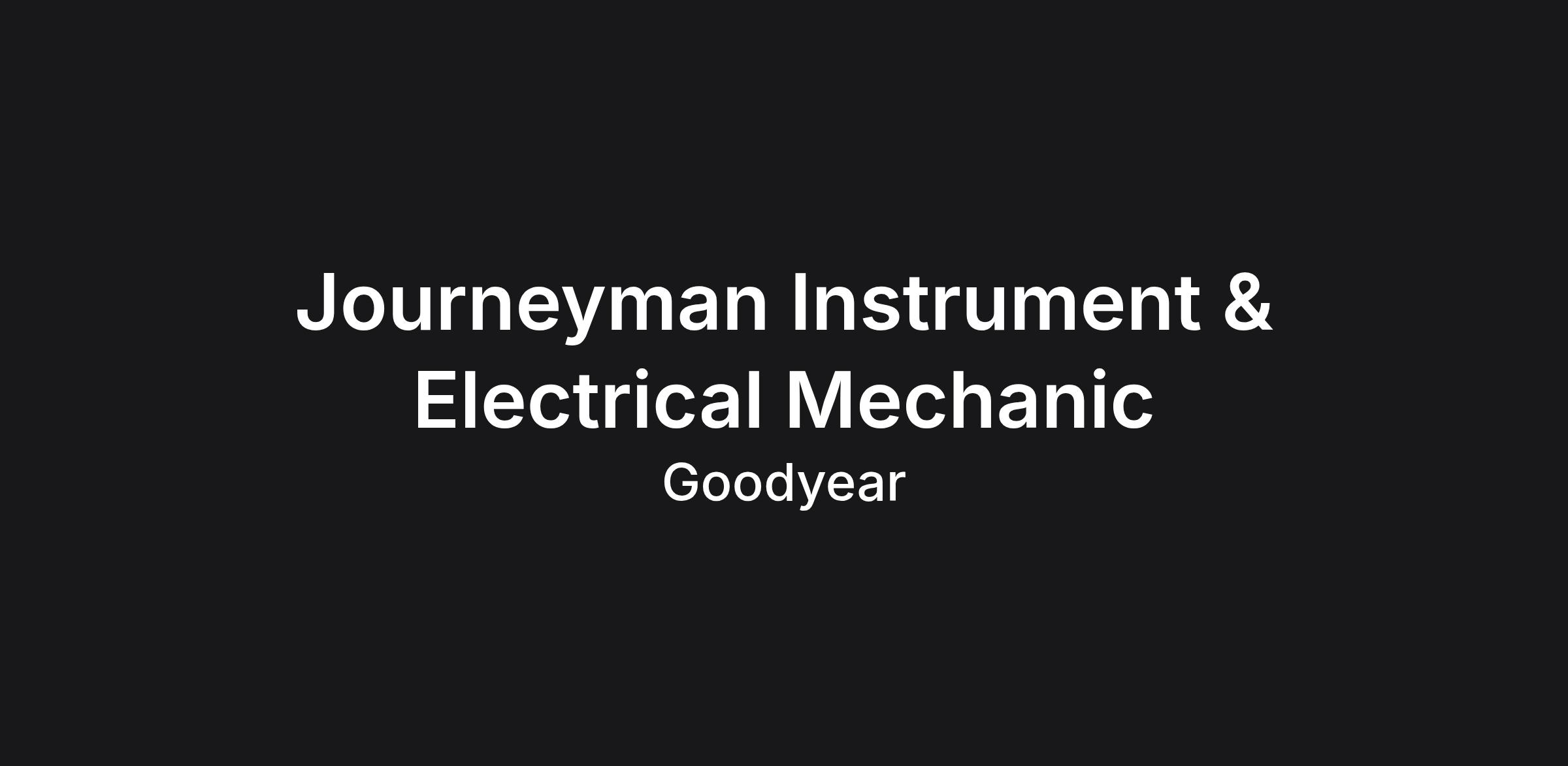 As an Instrument/Electrical Mechanic , you will be responsible for troubleshooting, preventative maintenance and repair of all plant equipment in one of Goodyear's Chemical manufacturing plants. Goodyear Chemical is a division of The Goodyear Tire & Rubber Company which manufactures and markets rubber-related chemicals for various applications. You will also promote safety, environmental stewardship and housekeeping throughout the facility.