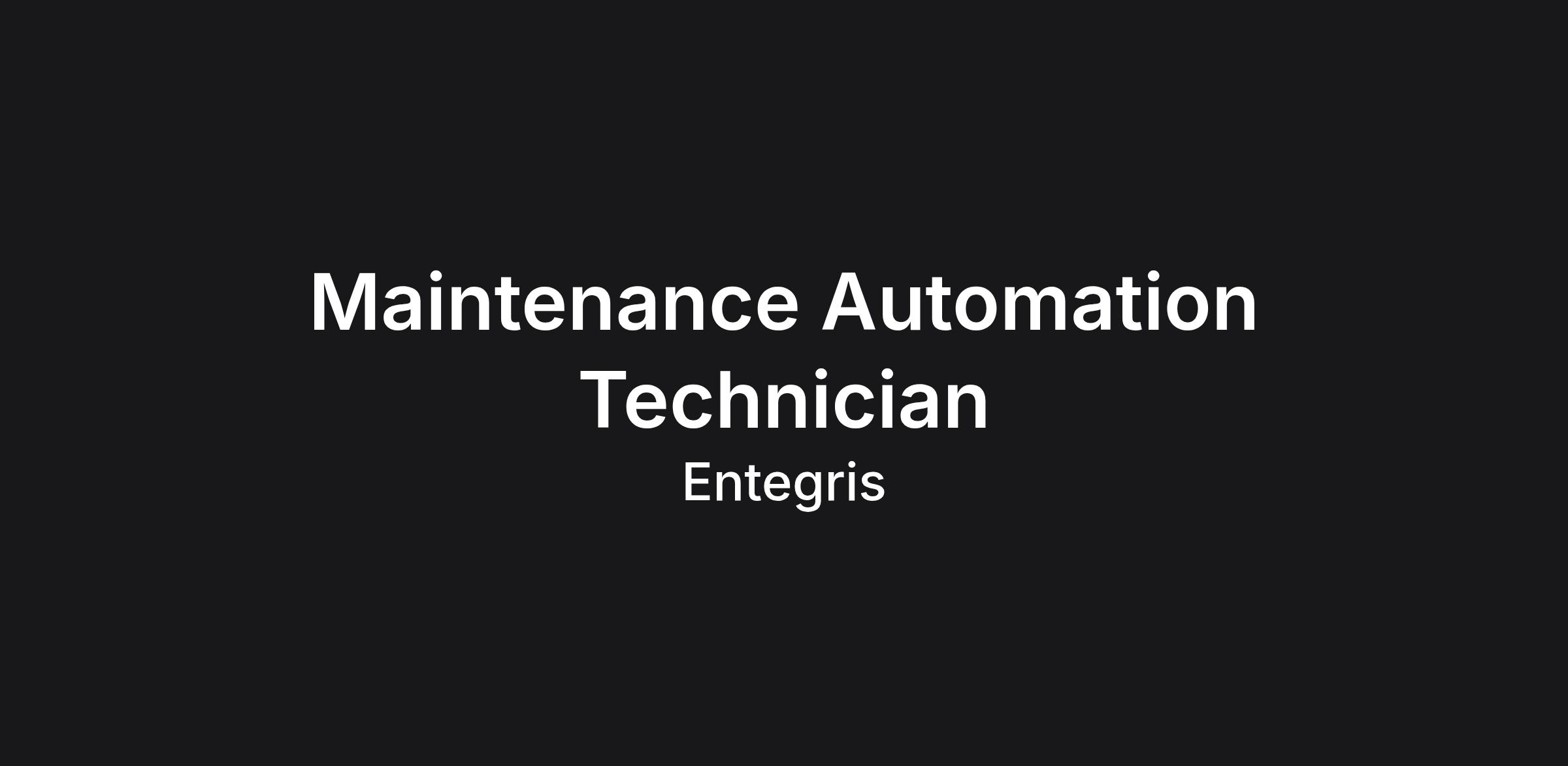 Job Title: Maintenance Automation Technician Job Description: THE ROLE: Our site in Chaska, MN is seeking a Maintenance Automation Technician to join our team. The Maintenance Technician performs a variety of tasks and assignments including the maintenance and repair of production equipment and facility infrastructure. The focus will be on equipment uptime and reliability, preventative maintenance, safety, troubleshooting, controls and automation equipment, and process improvements. HOURS FOR THIS POSITION ARE 2PM-10PM MONDAY-FRIDAY WHAT YOU’LL DO: Repairs, replaces and tests of electrical circuits on equipment. Isolates defects in wiring, switches, motors and other electrical equipment using testing instruments. Replace faulty switches, sockets and other elements of electrical systems. Mounts motors and completes circuits per diagram specifications. Stays current with all codes and attends Entegris training. Performs all work in accordance with established safety procedures. Inspects completed work for conformance with job specifications and safety requirements. Serves as a primary resource for controls and automation maintenance issues. Utilizes the computerized work order system. Enters information and complete all required documentation thoroughly and timely. Focuses on key business processes to influence customer satisfaction, waste elimination, growth, cost effectiveness and product quality. Follows standard Engineering and Technology practices and procedures. Participates in Entegris' continual quality improvement process and dedication to customer satisfaction. Completes miscellaneous tasks as assigned. Maintains a clean and safe work area. Wears required Personal Protective Equipment. Performs duties in a safe manner and observes approved safety procedures. Communicates potential hazards immediately to supervisor and identifies and corrects potential unsafe conditions. Robot PM’s – inspection of pneumatic and electrical connections and lines for functionality. Inspection of in-house built equipment and associated PMs. Replace components and adjust sensors when required. Adjust production floor robot program points and troubleshoot robot functional issues that arise. Troubleshoot and adjust in-house built and vendor custom built equipment issues pertaining to sensors, motor drives, vision systems, PLC and HMI issues. Network communication to and from equipment - troubleshooting and repair of issues. Support Tooling setup after mold tear down for service or cleaning by adjusting core servo homing adjustment. Add new variant part numbers to Automated equipment. Update test inspection programs for new variant parts and or test spec updates to current equipment. Update data output info to CamLine for data collection of current equipment. Preventative, predictive, and corrective maintenance. Connection of production floor robots to RJG for bad part quarantine. Clear all robots and automated equipment for safe re-start after a power outage or shut down. Work with and support robotics, Electrical (AC/DC), hydraulics, pneumatic, servo motors, sensors, HMI interfaces, and complex mechanical equipment. Provide support for PLC, HMI, servo and stepper drives, Faunc, Sepro and Star Robots and vision systems. WHAT WE SEEK: Two-year technical degree (controls, automation, robotics, electrical, mechanical – electrical, etc) (or) equivalent experience and training in a manufacturing environment. Knowledge of Solid works or CAD or equivalent, Word, Excel. Requires high degree of mechanical aptitude and creative problem solving. Requires hands on electrical experience. Requires advanced troubleshooting skills. Require self-motivation and self-direction. Ability to work occasionally on weekends and overtime as required. Ability to work occasionally on call. Ability to work independently. Ability to train and support co-workers. WHY WORK AT ENTEGRIS? Lead, Inspire, Innovate. Define Your Future Not everyone who works for a global company shares the same background, experiences and perspectives. We leverage the differences of our employees to bring new ideas to the table. Every employee throughout the company is encouraged to share input on projects and initiatives. Our decision-making process is truly a collaborative effort as we realize there are leaders at every level of the organization. We put our values at the core of how we operate as an organization — not just when it’s convenient, but in a lasting and meaningful way. We want the time and energy you spend here to have a positive impact on your life inside and outside of the office. WHAT