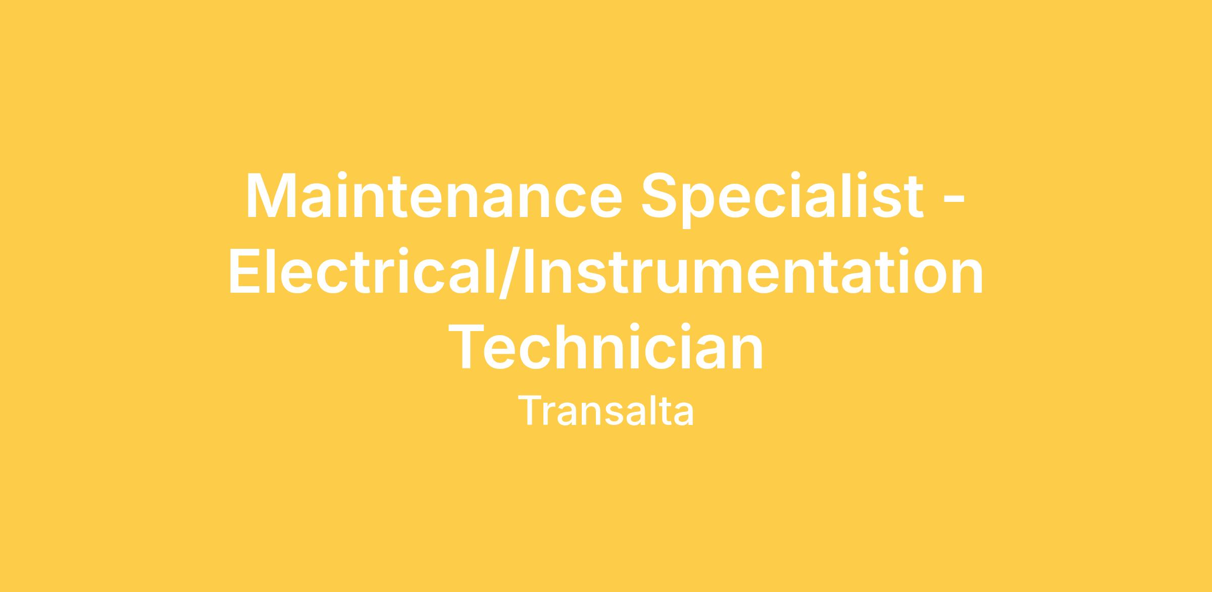Maintenance Specialist – Electrical/Instrumentation Technician