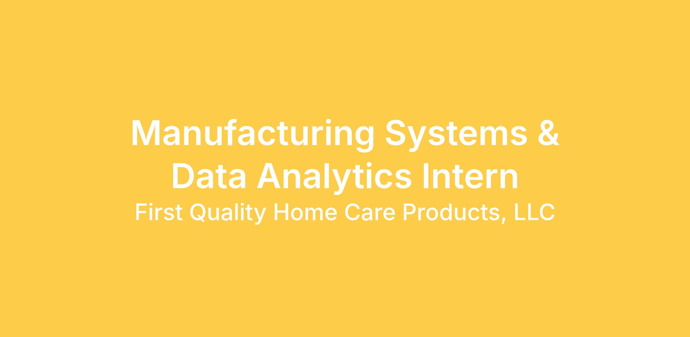 Job Title: Manufacturing Systems & Data Analytics Intern