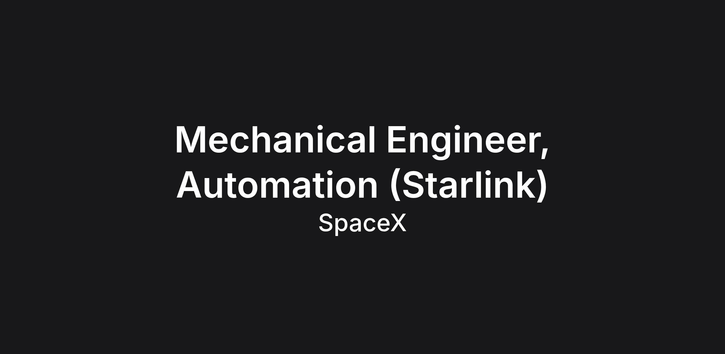 SpaceX was founded under the belief that a future where humanity is out exploring the stars is fundamentally more exciting than one where we are not. Today SpaceX is actively developing the technologies to make this possible, with the ultimate goal of enabling human life on Mars. MECHANICAL ENGINEER, AUTOMATION (STARLINK) At SpaceX we’re leveraging our experience in building rockets and spacecraft to deploy Starlink, the world’s most advanced broadband internet system. Starlink is the world’s largest satellite constellation and is providing fast, reliable internet to millions of users worldwide. We design, build, test, and operate all parts of the system – thousands of satellites, consumer receivers that allow users to connect within minutes of unboxing, and the software that brings it all together. We’ve only begun to scratch the surface of Starlink’s potential global impact and are looking for best-in-class engineers to help maximize Starlink’s utility for communities and businesses around the globe. One key component of SpaceX’s success so far is our commitment to keeping all engineering and production in-house, which enables a tight feedback loop, nimble decision making, and speedy deliverables. Tooling Design and Automation Engineers at our Bastrop site are hyper-focused on designing and developing full factory solutions for consumer electronics in the tens of millions that are both technically sophisticated and easy to use. As a member of this team, you will lead creative, multi-disciplinary projects spanning machine design, robotics, motion systems, and factory health monitoring that all come together to form the innovative, high-rate factories that allow us to deliver internet to those that need it most.