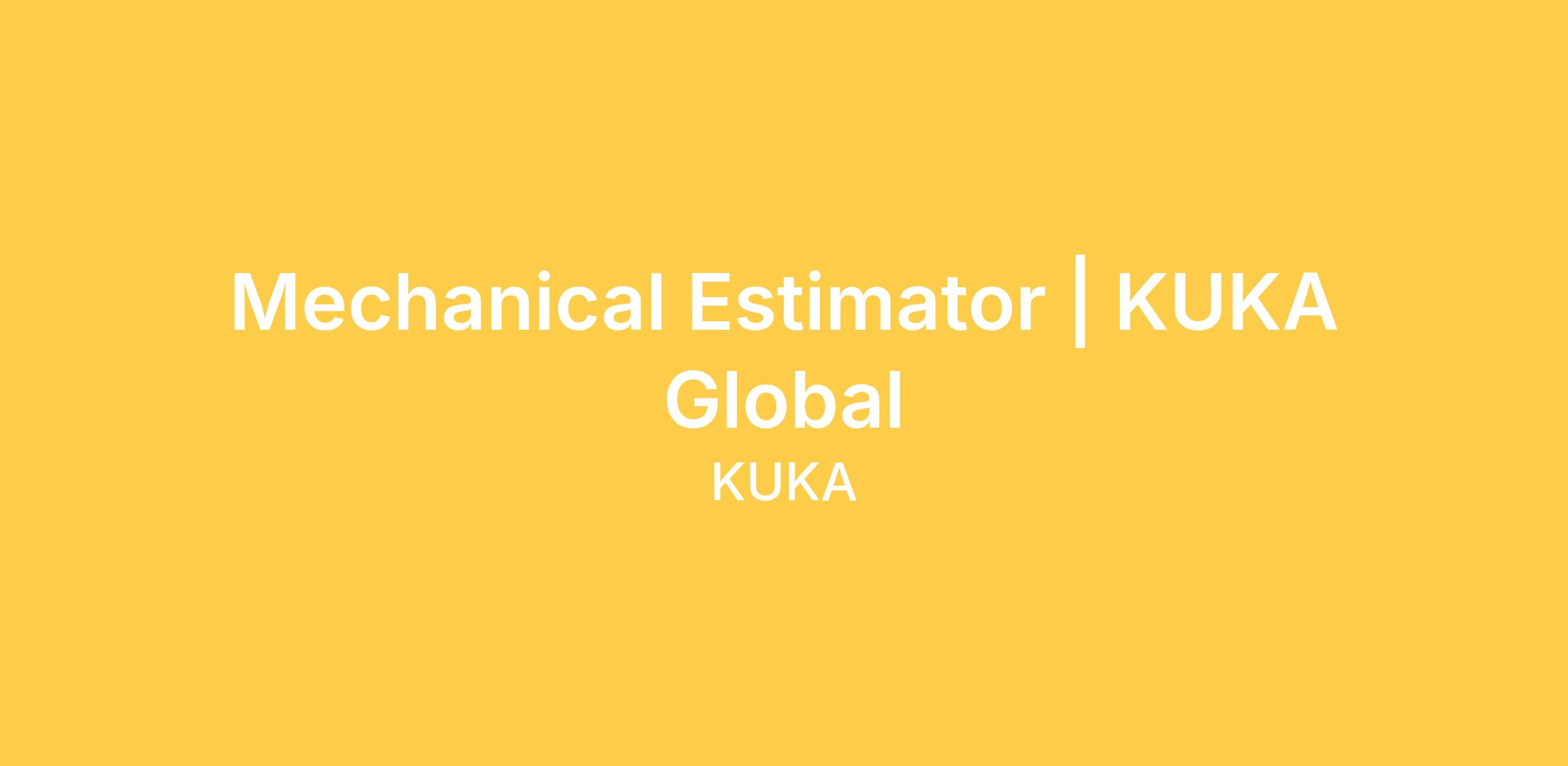Mechanical Estimator KUKA Systems North America seeks an experienced Mechanical Estimator to join our team. The Mechanical Estimator compiles estimates of cost on special parts or products as a basis for pricing purposes. Must have engineering knowledge and be able to interpret engineering layouts and data. Requires extensive knowledge of designs, manufacturing processes and procedures with direct experience in welding, automation and/or robotic equipment. BIW experience strongly preferred. Responsibilities Application Requirements