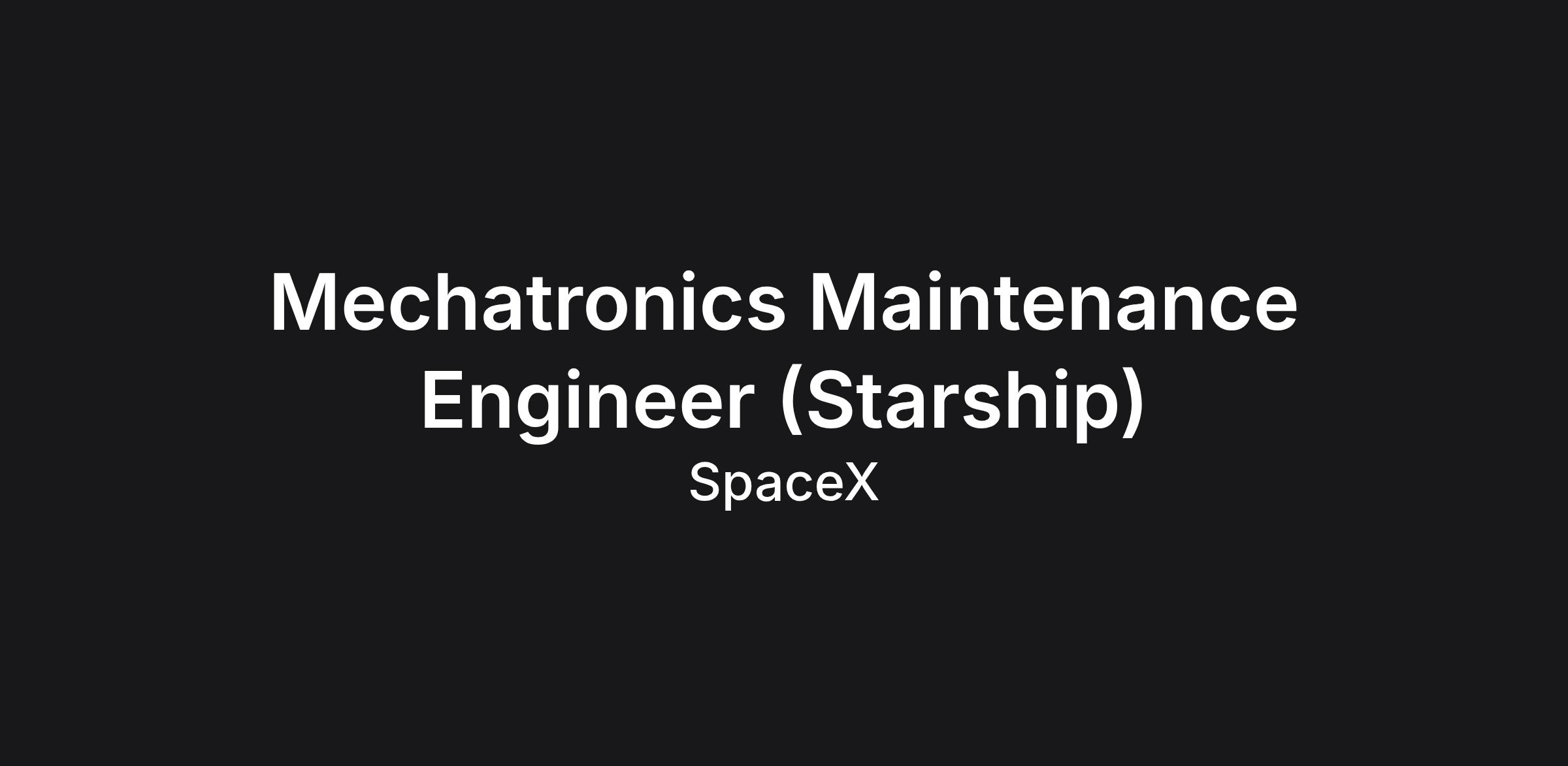 uipment reliability programs that include: Preventive maintenance tasks performed by machine operators and experienced maintenance technicians Comprehensive BOM development and selection of critical spare parts Integration of existing equipment into SpaceX Internet of Things (IoT) to enable real time performance monitoring Design and integration of new sensors onto machines to set predictive and condition-based monitoring triggers Iterative design improvements Develop engineering solutions to repetitive or high consequence failures on critical equipment through Root Cause Analysis (RCA) Conduct Failure Mode Effects and Criticality Analysis (FMECA) to create proactive reliability programs for critical equipment Coordinate cross-functionally to drive process improvements, design iterations and complete equipment overhauls Integrate with internal tooling, automation and production teams to ensure maintainability of design is incorporated into new internally designed equipment Develop and implement maintenance and reliability Key Performance Indicators (KPIs) to drive equipment improvements and organizational efficiency Support onboarding and commissioning of newly purchased or fabricated equipment; release reliability programs prior to equipment entering production Provide technical support to production, maintenance management and technical personnel Manage production requests for asset improvementsand data collection BASIC QUALIFICATIONS: Bachelor's degree in an engineering discipline 1+ years of experience in manufacturing, reliability, or o