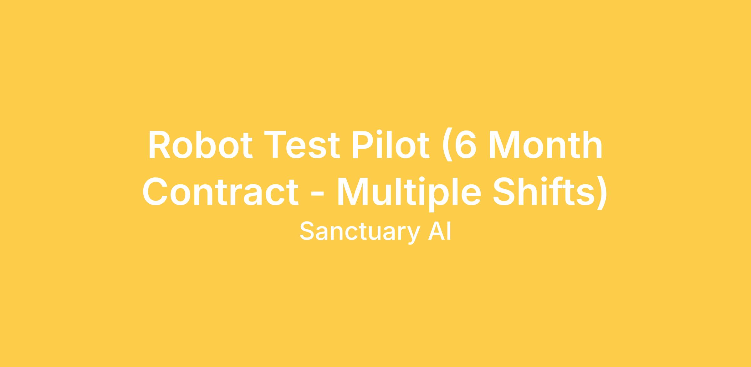 Sanctuary, a world leader in building AI-based control systems for humanoid robots, is looking to hire a skilled and motivated Robot Test Pilot to join our team on a 6-month contract. This position operates on a 4:00PM - 12:00AM shift or a 12:00 AM – 8:00 AM shift. As a Robot Test Pilot, you will play a vital role in the development of general purpose robots by piloting them in a variety of scenarios to collect critical data. Your work will directly contribute to improving our AI systems and advancing our mission of building human-like intelligence in machines.