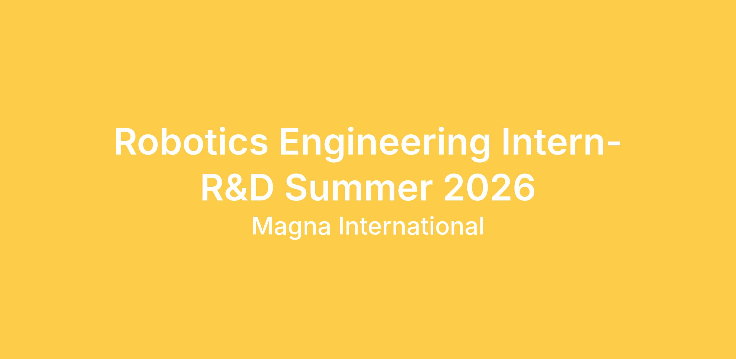Job descriptions may display in multiple languages based on your language selection. What we offer: At Magna, you can expect an engaging and dynamic environment where you can help to develop industry-leading automotive technologies. We invest in our employees, providing them with the support and resources they need to succeed. As a member of our global team, you can expect exciting, varied responsibilities as well as a wide range of development prospects. Because we believe that your career path should be as unique as you are. Group Summary: Magna is more than one of the world’s largest suppliers in the automotive space. We are a mobility technology company built to innovate, with a global, entrepreneurial-minded team. With 65+ years of expertise, our ecosystem of interconnected products combined with our complete vehicle expertise uniquely positions us to advance mobility in an expanded transportation landscape. Job Responsibilities: About the Role Magna Corporate R&D is seeking a talented, visionary, and self-motivated Robotics Engineering summer student to for a 4 month summer internship term. Working closely with the Advanced Manufacturing department, the Robotics group is dedicated to creating new automation solutions that enhance overall efficiencies through advanced robotic technologies. The ideal candidate is a MS/MEng or BS/BEng student in the 3rd year in the field of Electrical, Mechanical, Mechatronics-or similar Engineering with a focus on Robotics. They have experience with ROS(2) and Python, robotic programming and controls, and initial exposure to validation processes for the functional and reliability evaluation of complex robotic systems. They also have a demonstrated understanding of system engineering principles, including but not limited to system definition, system architecture, and system modeling. Additionally, the candidate should possess some experience in machine vision/image analysis, tactile perception, and/or sensor fusion techniques for task automation. They will work in a culture that fosters creativity and problem-solving. This position is crucial to the Group and will be part of a tightly-knit development team that creates advanced manufacturing solutions for the future. Your Responsibilities Contribute to operating the newly-build advanced robotics lab at the Magna Innovation Campus Toronto, including communication with internal and external stakeholders, and the development of test and validation plans, including resources and materials Work on the definition, technical feasibility analysis, and hardware and software specification of test solutions applicable to various advanced robotic technologies, including object recognition, machine vision, motion planning, tactile perception, and dexterity. Collaborate with cross-functional engineering, product management, and/or program management to define and develop the technology roadmap for industrial robotic applications. Understand system requirements, work with the team to establish and validate operational windows, design experiments, and define test plans Implement test systems, including proposing appropriate hardware (e.g., fixtures, sensors, actuators), interfacing electrical or computer systems (e.g., data acquisition systems) Execute test plans, collect test data, perform data analysis, and report and present the results. Who we are looking for MS/MEng or 3rd year BS/BEng student in Electrical, Mechanical, Mechatronics-or similar Engineering with a focus on Robotics Capabilities in ROS and Python programming, other programming languages such as C/C++ and familiarity with NVIDIA’s ISAAC Robotics Framework etc. an asset Initial experience in working with Robotic Control Systems, PLCs and related communication interfaces Familiarity with AI/ML methods, for computer-vision tasks, tactile sensing etc. Understanding of motion planning, actuators, kinematics etc. Your preferred qualifications Creative and self-motivated with the ability to understand and divide a vision into prioritized tasks; Able to work independently on assigned tasks (under supervision) Ability to resolve complex issues in creative, efficient, and effective ways Excellent written (white papers) and oral (presentation) communication skills Awareness, Unity, Empowerment: At Magna, we believe that a diverse workforce is critical to our success. That’s why we are proud to be an equal opportunity employer. We hire on the basis of experience and qualifications, and in consideration of job requirements, regardless of, in particular, color, ancestry, religion, gender, origin, sexual orientation, age, citizenship, marital status, disability or gender identity. Magna takes the privacy of your personal information seriously. We discourage you from sending applications via email or traditional mail to comply with GDPR requirements and your local Data Privacy Law. AI-Assisted Screening Disclosure As part of our commitment to a fair, consistent, and efficient recruitment process, we may use artificial intelligence (AI) tools to assist in the initial screening of applications submitted through our Workday system. These tools help identify qualifications and experience that align with the role requirements. Please note that AI is used solely to support our recruiters. Final decisions are always made by the hiring manager and the hiring team. Importantly, no applicant data is shared externally through these AI tools. All information remains securely within our systems and is handled in accordance with our privacy and data protection policies. Under conditions defined by applicable law, you may have the right to request an explanation of how AI is used to support decision-making. If you have any questions or concerns about this process, feel free to contact our Talent Attraction team. Worker Type: Student / Co-Op Group: Magna Corporate We see a future where everyone can live and move without limitations. That’s why we are developing technologie