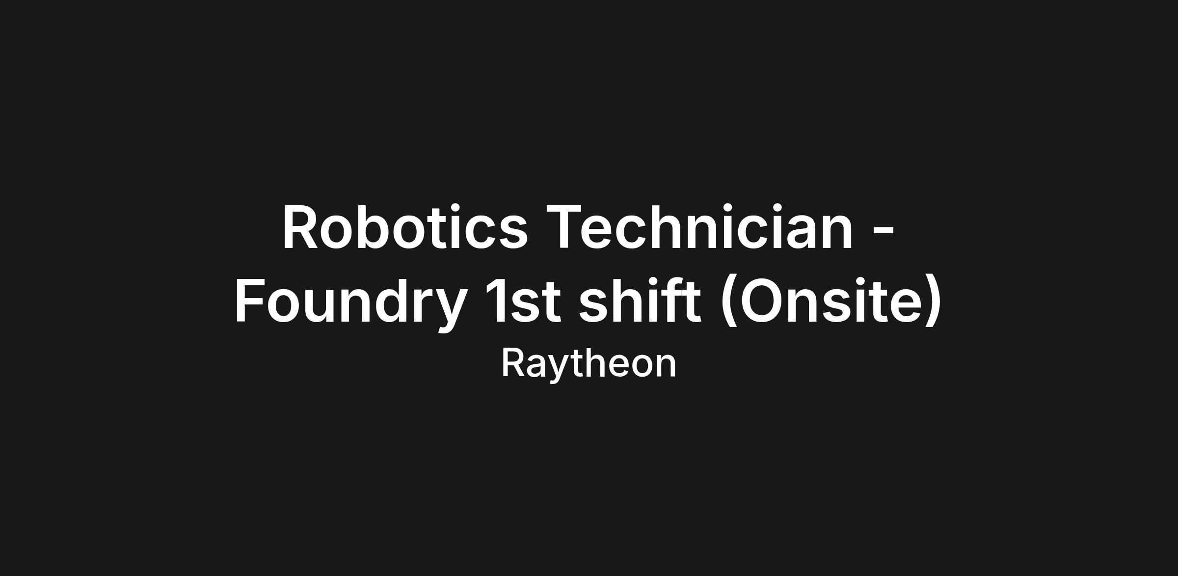 Qualifications We Prefer: Experience supporting Fanuc robots and multi-robot cells Experience troubleshooting robots with PLC-controlled systems Knowledge of vision systems or advanced robotic applications Experience with EOAT design, troubleshooting, or optimization Familiarity with robotic simulation or offline programming tools Experience supporting robotic continuous improvement initiatives Strong documentation and technical communication skills OSHA 30, Lean/Six Sigma experience Learn More & Apply Now! Please ensure the role type defined below is appropriate for your needs before applying to this role. This position is classified as Onsite. Employees who are working in Onsite roles will work primarily onsite. This includes all production and maintenance employees, as they are essential to the development of our products. Candidates will learn more about role type and current site status throughout the recruiting process. For onsite and hybrid roles, commuting to and from the assigned site is the employee’s personal responsibility. #pwhourly As part of our commitment to maintaining a secure hiring process, candidates may be asked to attend select steps of the interview process in-person at one of our office locations, regardless of whether the role is designated as on-site, hybrid or remote. Hired applicants may be eligible for benefits, including but not limited to, medical, dental, vision, life insurance, short-term disability, long-term disability, 401(k) match, flexible spending accounts, flexible work schedules, employee assistance program, Employee Scholar Program, parental leave, paid time off, and holidays. Specific benefits are dependent upon the specific business unit as well as whether or not the position is covered by a collective-bargaining agreement. Hired applicants may be eligible for annual short-term and/or long-term incentive compensation programs depending on the level of the position and whether or not it is covered by a collective-bargaining agreement. Payments under these annual programs are not guaranteed and are dependent upon a variety of factors including, but not limited to, individual performance, business unit performance, and/or the company’s performance. This role is a U.S.-based role. If the successful candidate resides in a U.S. territory, the appropriate pay structure and benefits will apply. RTX anticipates the application window closing approximately 40 days from the date the notice was posted. However, factors such as candidate flow and business necessity may require RTX to shorten or extend the application window. RTX is an Equal Opportunity Employer. All qualified applicants will receive consideration for employment without regard to race, color, religion, sex, sexual orientation, gender identity, national origin, age, disability or veteran status, or any other applicable state or federal protected class. RTX provides affirmative action in employment for qualified Individuals with a Disability and Protected Veterans in compliance with Section 503 of the Rehabilitation Act and the Vietnam Era Veterans’ Readjustment Assistance Act. Privacy Policy and Terms: Click on this link to read the Policy and Terms