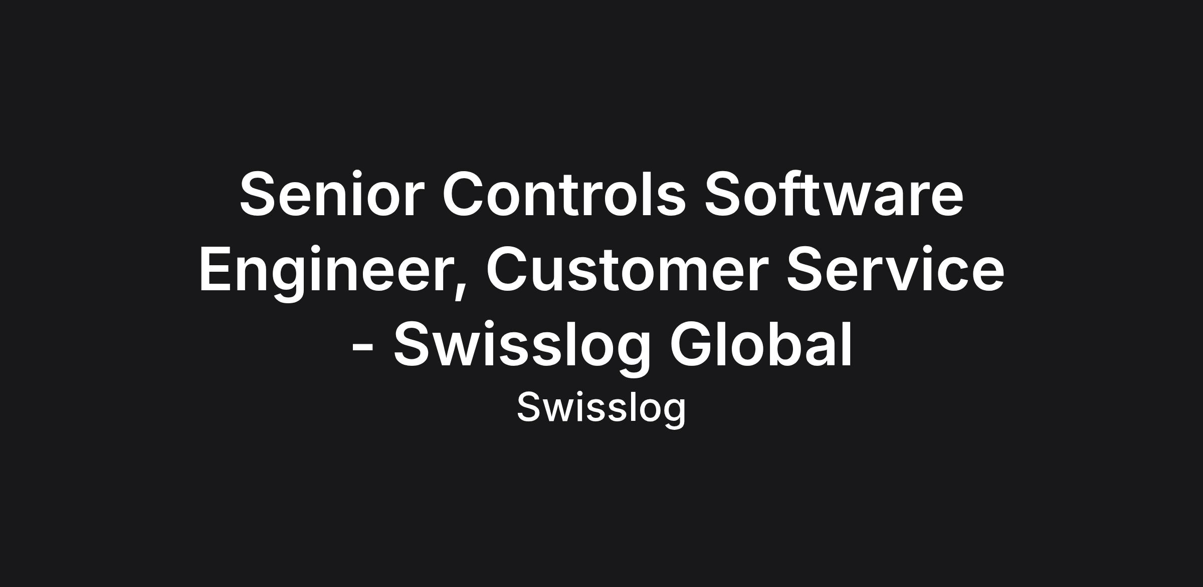 Senior Controls Software Engineer, Customer Service Where do people love what they do, and being great at what they do? At Swisslog, that’s where! Our teams are the heart of a world-leading Robotics company that’s harnessing the power of technology to shape the future of intralogistics. The result? We’re transforming performance and efficiency for customers across the globe, giving them the vital edge in their markets. Responsibilities Make an impact Application Requirements What you need to succeed