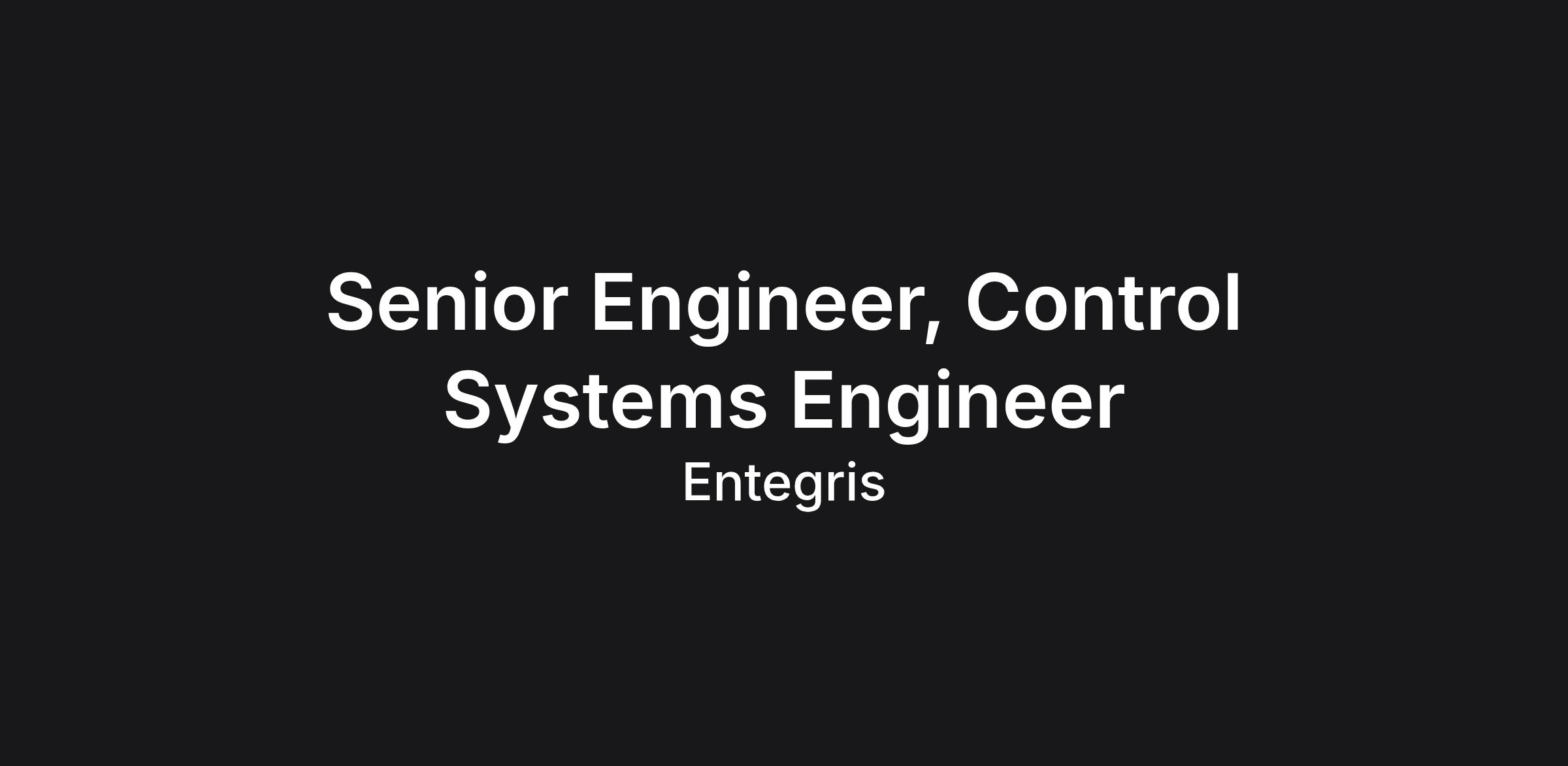 Job Title: Senior Engineer, Control Systems Engineer Job Description: The Role: Entegris is currently seeking a Sr Control Systems Engineer to join our Advanced Purity Solutions Division.