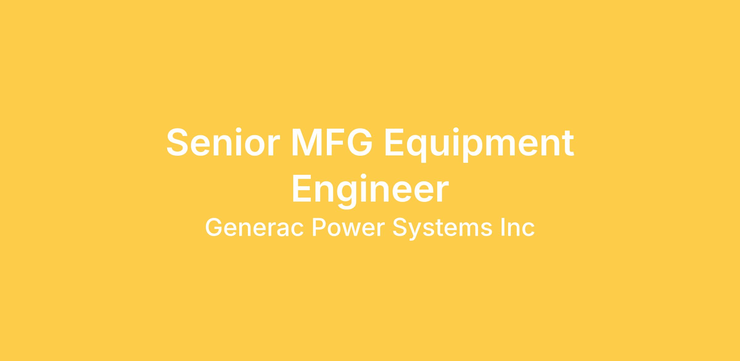 Generac Clean Energy Solutions is looking for a highly motivated Manufacturing Equipment Engineer to develop and ramp automated assembly lines and processes with our Manufacturing Engineering team and supplier partners.