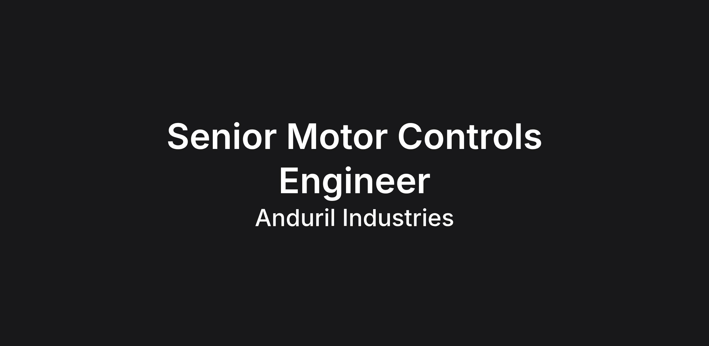 Anduril Industries is a defense technology company with a mission to transform U.S. and allied military capabilities with advanced technology. By bringing the expertise, technology, and business model of the 21st century’s most innovative companies to the defense industry, Anduril is changing how military systems are designed, built and sold. Anduril’s family of systems is powered by Lattice OS, an AI-powered operating system that turns thousands of data streams into a realtime, 3D command and control center. As the world enters an era of strategic competition, Anduril is committed to bringing cutting-edge autonomy, AI, computer vision, sensor fusion, and networking technology to the military in months, not years. ABOUT THE ROLE We are looking for Senior Motor Controls Engineers to join the team! You will develop motor control and actuator firmware that spans across Anduril’s fleet of autonomous vehicles on land, air, and sea. The ideal person for this role will have a blend of experience from both tech and defense environments and is looking to leverage their passion for motor controls, firmware, and low-level development here at Anduril. WHAT YOU'LL DO Develop motion control systems for applications such as precision actuators and electric propulsion Develop motor controls algorithms using Matlab / Simulink Develop motor models and integrate with SITL systems Integrate Simulink autocode algorithms with microcontroller C based RTOS and application Assist with part selection, board and product design Bring up new boards and toolchains Support device manufacturing efforts and operational deployments REQUIRED QUALIFICATIONS Bachelor's degree in Computer Science, Electrical Engineering, etc., or equivalent experience Experience and formal training with classical control systems Experience with Matlab and Simulink Experience with motor control circuits and peripherals, such as drivers, encoders, and Hall sensors Background in low-level firmware architecture, design and development in C Experience with embedded ARM and motor control modules within ARM microcontrollers Comfortable with typical embedded systems tools, compilers, debuggers and IDEs Broad experience with microcontrollers, application processors, revision control systems Familiarity with common bus protocols such as SPI, I2C, CAN, RS485, etc. Strong debugging skills through use of instrumentation such as oscilloscopes and protocol analyzers Application experience in areas such as robotics, automation, motor control, and sensor fusion U.S. Person status is required as this position needs to access export controlled data US Salary Range $191,000 - $253,000 USD The salary range for this role is an estimate based on a wide range of compensation factors, inclusive of base salary only. Actual salary offer may vary based on (but not limited to) work experience, education and/or training, critical skills, and/or business considerations. Highly competitive equity grants are included in the majority of full time offers; and are considered part of Anduril's total compensation package. Additionally, Anduril offers top-tier benefits for full-time employees,