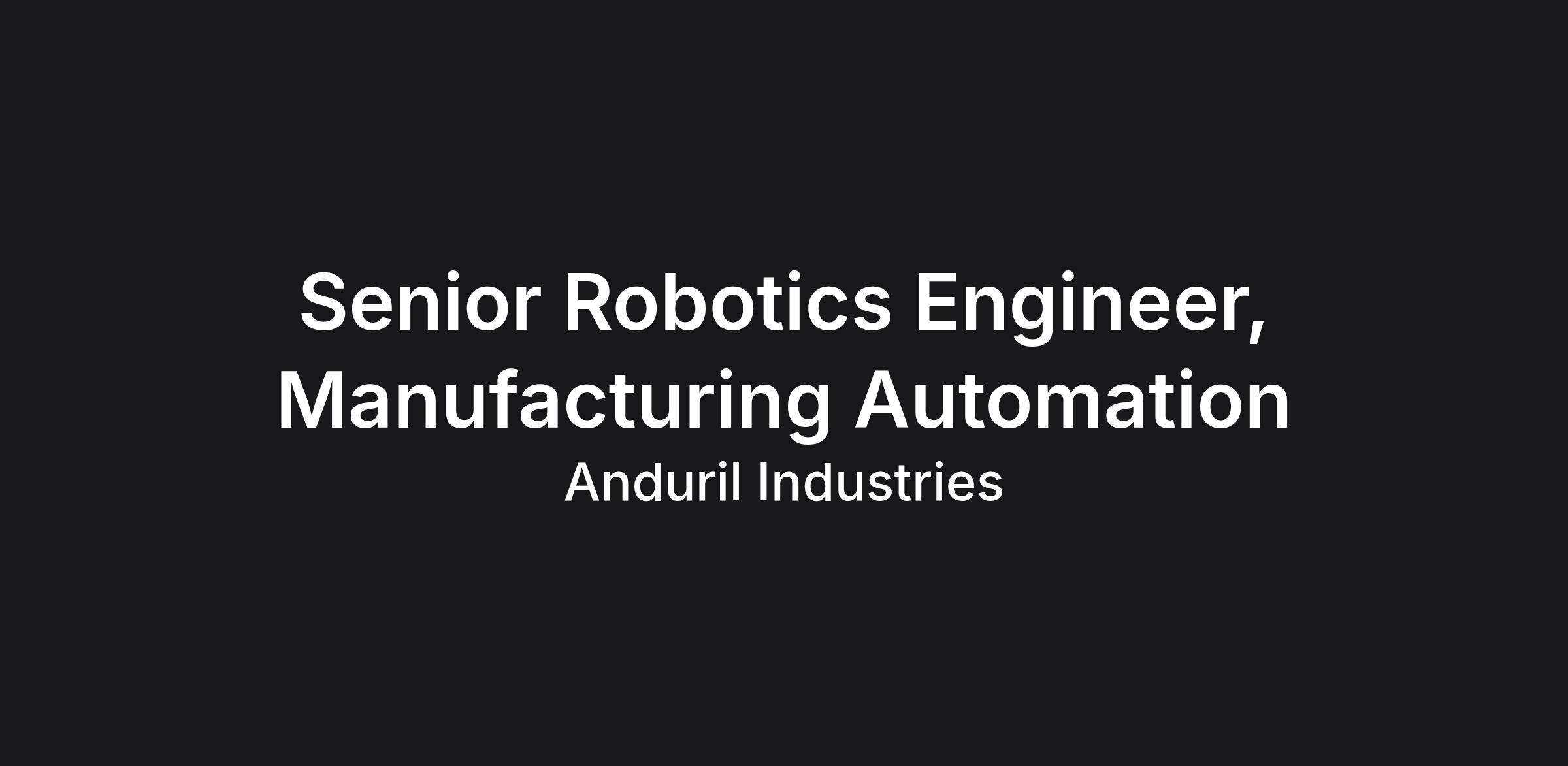 Anduril Industries is a defense technology company with a mission to transform U.S. and allied military capabilities with advanced technology. By bringing the expertise, technology, and business model of the 21st century’s most innovative companies to the defense industry, Anduril is changing how military systems are designed, built and sold. Anduril’s family of systems is powered by Lattice OS, an AI-powered operating system that turns thousands of data streams into a realtime, 3D command and control center. As the world enters an era of strategic competition, Anduril is committed to bringing cutting-edge autonomy, AI, computer vision, sensor fusion, and networking technology to the military in months, not years. ABOUT THE TEAM Anduril’s Manufacturing Automation team is seeking a Senior Robotics Engineer to join our team. The Manufacturing Automation team is responsible for the design, integration, and deployment of automated manufacturing systems across Anduril factories. As a member of this team, you will have the opportunity to help define what production automation looks like for Anduril at a national scale. WHAT YOU'LL DO Select, design, and integrate industrial robots / cobots for manufacturing automation, from initial concept through full production deployment Develop, optimize, and debug robot programs, including motion planning, path planning, safety configurations, and vision-based guidance Specify, select, and integrate EOAT, including grippers, sensors, and custom tooling Design and manage robot cell layouts, including safety enclosures, work envelopes, and necessary infrastructure Implement and verify safety functions (STO, SLS, etc.) in accordance with relevant safety standards Develop and execute simulation models to validate robot reach, cycle time, and potential collisions before physical implementation Select and integrate robot dresspacks Develop and enforce internal standards for robotic system design, programming, safety, and integration Collaborate with cross-functional teams, including controls engineers, mechanical designers, and production staff, to ensure seamless integration of robotic systems REQUIRED QUALIFICATIONS Bachelor's degree in Robotics, Mechanical Engineering, Electrical Engineering, Computer Science, or a closely related field 4+ years of hands-on experience in robotics and automation within a manufacturing production environment Strong capability in programming and commissioning robots / cobots from FANUC and UR Proficiency in utilizing robot simulation software (e.g., RoboDK, FANUC ROBOGUIDE, UR Virtual Controller, Delmia) Strong theoretical and practical understanding of robot kinematics, dynamics, motion control, and advanced path planning techniques Proficient in the configuration, tuning, and troubleshooting of robot drives, servo motors, and associated motion control systems In-depth knowledge of industrial safety standards (e.g., ISO 10218, RIA R15.06) and the implementation of safety functions like STO, SLS, SS1, etc Proven experience in EOAT selection, design, integration, and troubleshooting, including pneumatic, electric, and vacuum grippers. Basic understanding of EtherNet/IP and Profinet Must be a U.S. Person due to required access to U.S. export controlled information or facilities PREFERRED QUALIFICATIONS 6+ years of hands-on experience in robotics and automation within a manufacturing production environment Experience designing and deploying robotic dispense systems Experience integrating and configuring vision systems for guidance, inspection, and quality control Knowledge of PLC programming (Rockwell and Siemens) Familiarity with CAD packages including Solidworks, NX, CATIA, or AutoCAD TUV FS Engineer certification (Functional Safety of Machinery) US Salary Range $146,000 - $194,000 USD The salary range for this role is an estimate based on a wide range of compensation factors, inclusive of base salary only. Actual salary offer may vary based on (but not limited to) work experience, education and/or training, critical skills, and/or business considerations. Highly competitive equity grants are included in the majority of full time offers; and are considered part of Anduril's total compensation package. Additionally, Anduril offers top-tier benefits for full-time employees,
