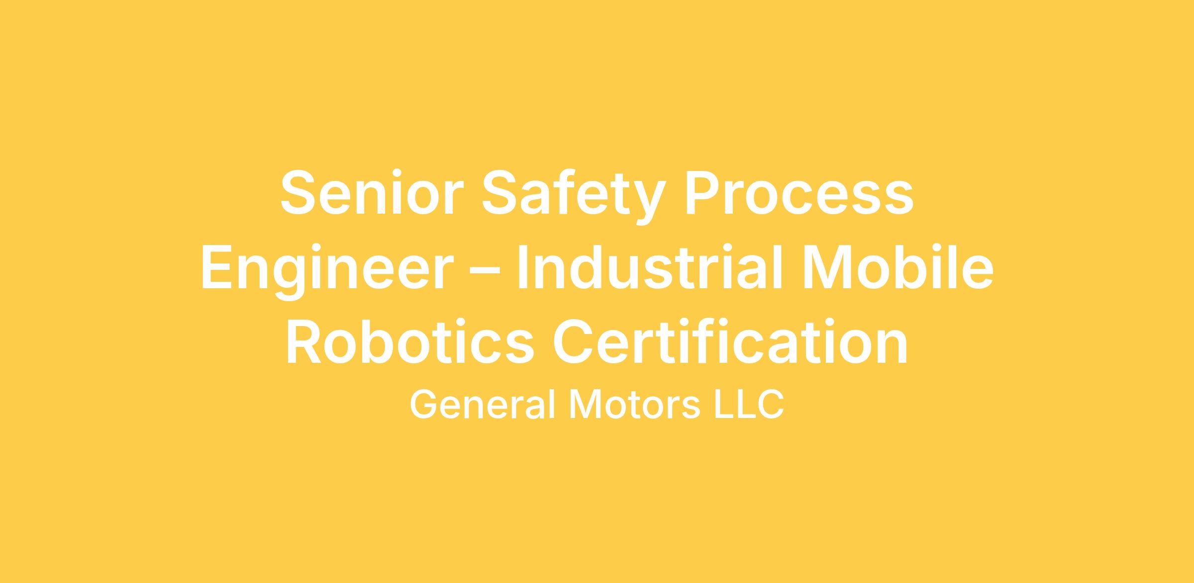 Senior Safety Process Engineer – Industrial Mobile Robotics Certification