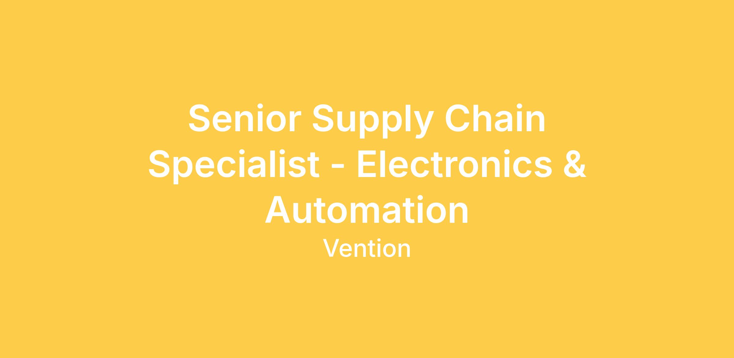 As a Senior Supply Chain Specialist - Electronics & Automation at Vention… You’ll lead and optimize the global supply chain of electrical and electronic components (such as PCBs, harnesses, sensors, motors, control modules) for our automation platform. You’ll shape sourcing strategies, build strong supplier partnerships, and ensure cost, quality and delivery performance keep pace with our rapid growth. You will guide a team of buyers and collaborate across Engineering, Production and Quality to enable scalable manufacturing operations worldwide. What You’ll Do