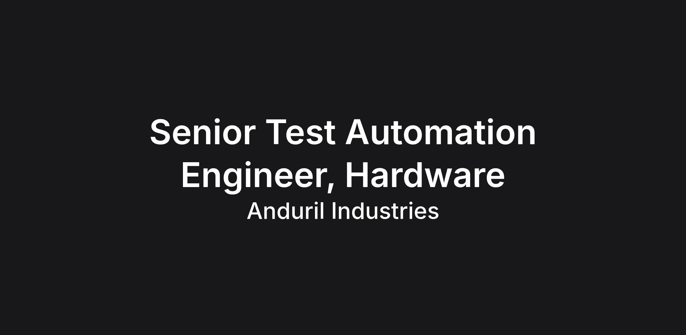 ike (TRS) is a division with two missions: 1) build highly capable autonomous drones, and 2) build solid rocket motors at scale. We transform products like Ghost, Anvil, Bolt, and Altius from early concepts into fully operational capabilities by partnering closely with specialist engineering, operations, and production teams. Through our Anduril Rocket Motor Systems (RMS) team, we design and manufacture solid rocket motors using advanced materials, proprietary formulations, and high-volume production methods—delivering safe, reliable propulsion systems that support a wide range of mission requirements. TRS hires software engineers & hardware engineers, who are excited to build across a diverse and powerful portfolio—from autonomous aerial systems to high-performance solid rocket motors. Our teams contribute to highly capable autonomous robotics systems and propulsion products that operate reliably in the most demanding mission environment. ABOUT THE JOB We are looking to bring on a Senior Test Automation Engineer, Hardware to design and deliver test systems for Anduril’s electronic products. This person will work to identify gaps in test coverage and own the design and delivery of the hardware and software test solution. A strong Test Design Engineer will need to have a proven track record of delivering turn-key test solutions for electronic components and systems and a background in hardware, software, integration and sustainment. WHAT YOU'LL DO Manage a small team of Test Automation Engineers to deliver End to End test solutions for customers Define, own, and execute End of Line test plans for a set of new products and features, in collaboration with firmware, software, and hardware design teams Define and implement test strategies that optimize product safety, product reliability, risk mitigation, FMEA coverage, and schedule Design and execution of PCBA and electrical system components with hands on testing and rework as necessary Data analysis and clear communication of results and collaboration with design engineers to resolve any product problems found via test Design and implement next generation test automation hardware systems to facilitate fast and repeatable testing of product Execution and management of purchasing, build, integration and final commissioning of functional testers Develop test procedures and test automation from component level to system level Support board bring-up and bench validation as needed Support Design Engineer with DFT, provide feedback from test results to improve quality and test coverage Support manufacture test bring-up and yield Support in Root Cause Analysis process Lead and participate as a key contributor in design reviews Provide technical mentorship to engineering teams REQUIRED QUALIFICATIONS Bachelor’s Degree in Electrical Engineering or equivalent 8+ years of hands on electrical engineering experience designing functional test equipment 5+ years of experience in Schematic Capture and/or PCBA layout (experience with Altium Designer is a plus) 2+ years of experience in scripting language to develop automation (C/C++/C#, Python, or MATLAB – experience in LabVIEW is a plus) Experience with peripherals and developing test and validation strategies Advanced experience with computer hardware communication bus protocols: USB, I2C, I2S, CSI, Ethernet, SPI, PCIe, HDMI, CAN, serial comms, etc. Collaborate with a cross-functional team to support product development from prototype to production Understanding of lab safety protocols when working in all types of lab environment Familiarity with measurement analysis techniques such as Gage RR and Process Capability Analysis Understanding both hardware and software integration and test process Experience with source code revision and control (experience with GitHub is a plus) Must be eligible for a Security Clearance PREFERRED QUALIFICATIONS Master’s Degree in Electrical Engineering or equivalent Proficiency in MS Word, Excel, PowerPoint and VISIO A detail-oriented individual who strives in an environment that values effective team collaboration Hands-on experience with NI TestStand software Experience in Product Release Cycle from prototype to production and key deliverables of each phase Experience RF test equipment such as Vector Network Analyzers, Spectrum Analyzers, Signal Generators, and Power Meters Experience with testing RF components like power amplifiers, transmitters, receivers, and filters Experience with wired networking technologies (Gigabit, 10Gigabit) Hands-on experience with complex networking equipment, a deep understanding of networking protocols, test design and implementation chops and a background in IP network design US Salary Range $126,000 - $167,000 USD The salary range for this role is an estimate based on a wide range of compensation factors, inclusive of base salary only. Actual salary offer may vary based on (but not limited to) work experience, education and/or training, critical skills, and/or business considerations. Highly competitive equity grants are included in the majority of full time offers; and are considered part of Anduril's total compensation package. Additionally, Anduril offers top-tier benefits for full-time employees,