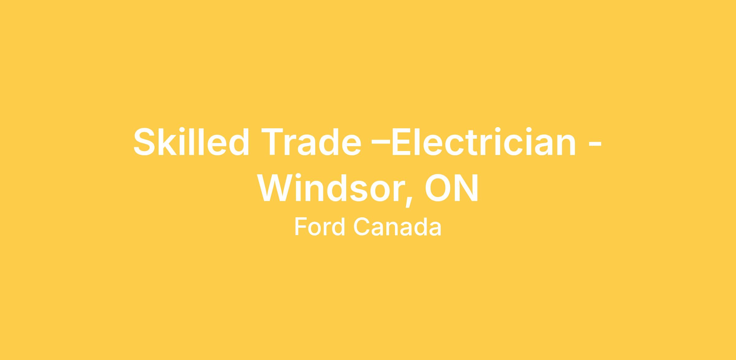 At Ford Motor Company of Canada, we are dedicated to designing, manufacturing and selling high quality vehicles that meet the diverse needs of our customers. We believe our employees and the different perspectives that they bring to the business are the driving force behind our success. Come discover a company that is focused on the quality of our vehicles, the environment, the community and the world in which we live. As we continue our journey to establish Windsor Operations globally as a Technical Centre of Excellence, we are seeking qualified applicants for opportunities within our skilled trade workforce as an Electrician (309A or 442A).
