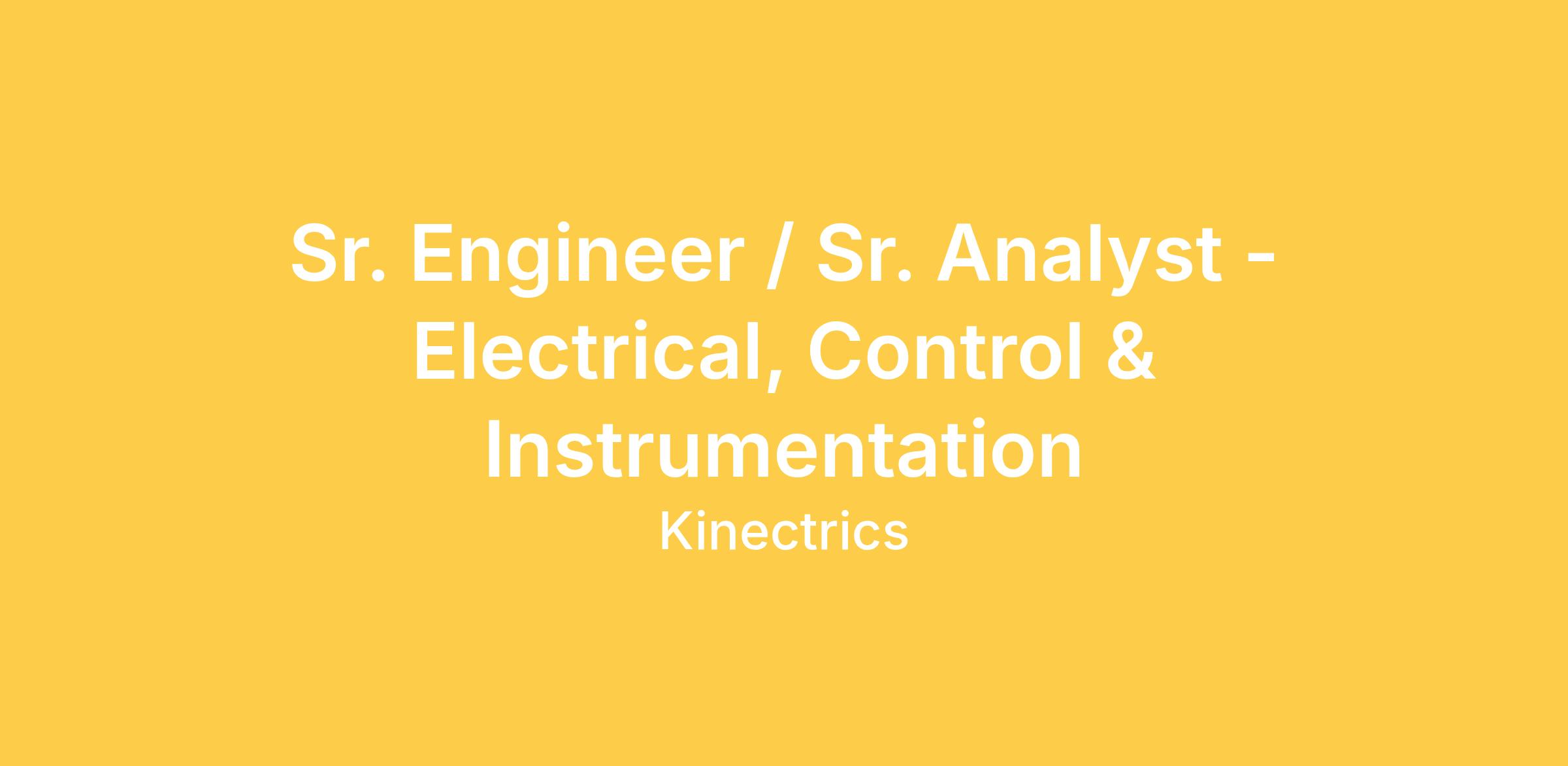Position: Senior Engineer / Sr. Analyst (Electrical, Instrumentation and Control)