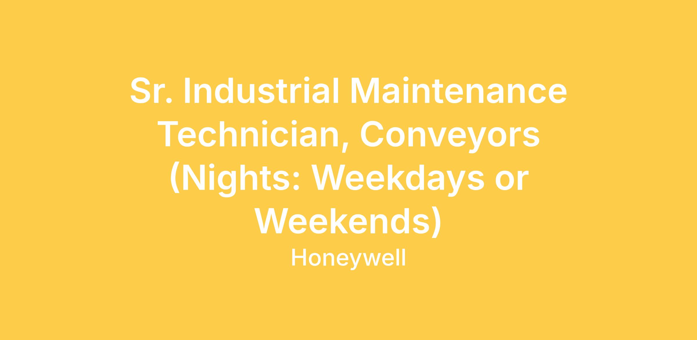 As Senior Industrial Maintenance Technician, Conveyors at Honeywell, you will have the opportunity to provide high-level technical support and service to our customers, ensuring the optimal performance of Honeywell products and systems. You will troubleshoot and resolve complex technical issues, perform maintenance and repairs. Your expertise and dedication will drive customer satisfaction and contribute to the success of our service operations.
