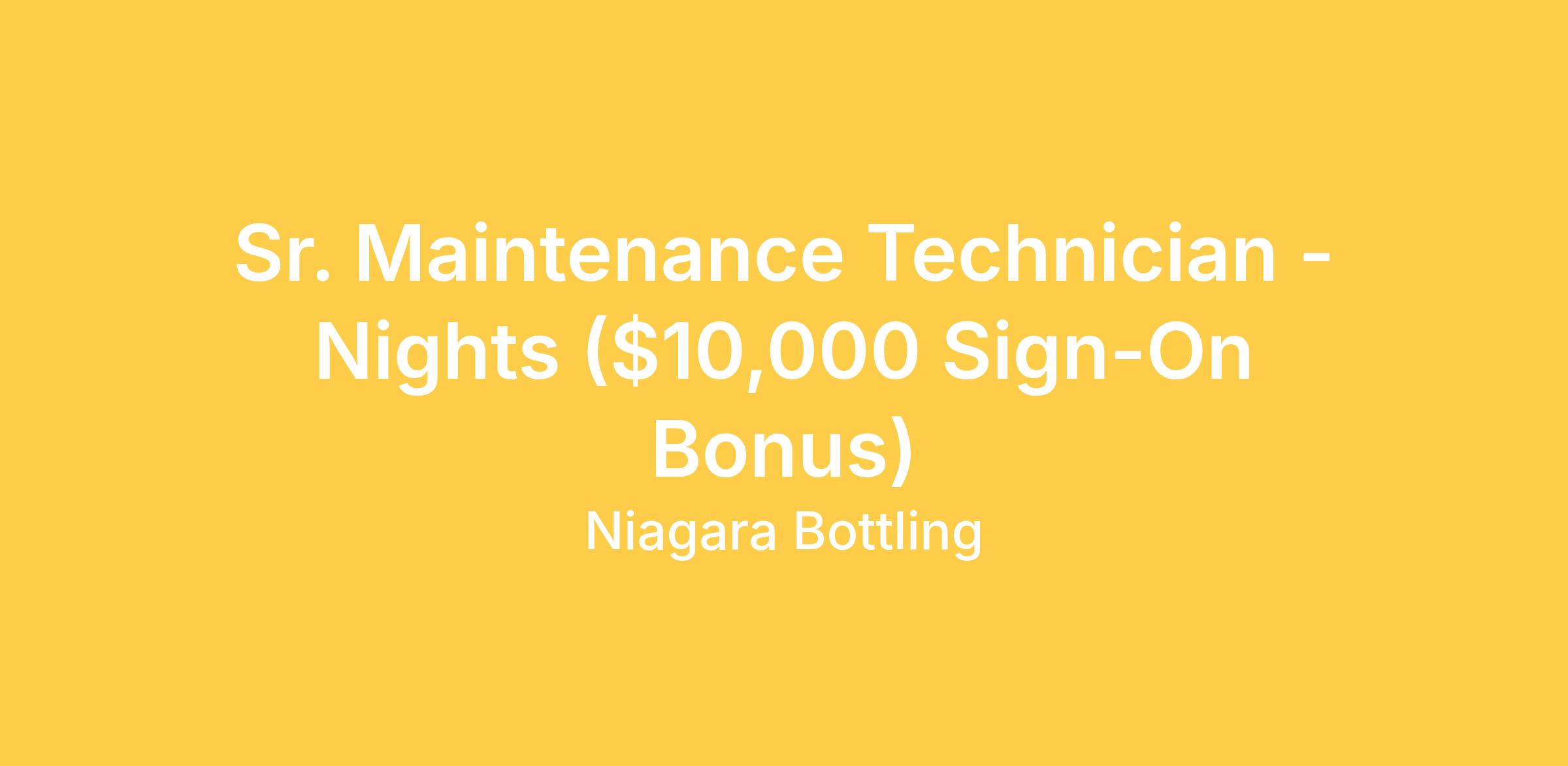 Sr. Maintenance Technician - Nights ($10,000 Sign-On Bonus)