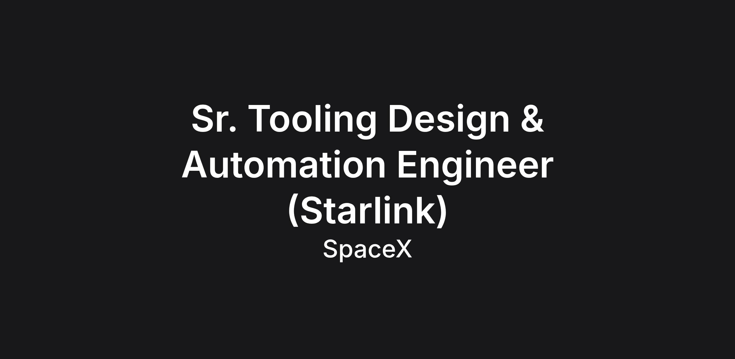 SpaceX was founded under the belief that a future where humanity is out exploring the stars is fundamentally more exciting than one where we are not. Today SpaceX is actively developing the technologies to make this possible, with the ultimate goal of enabling human life on Mars. SR. TOOLING DESIGN AND AUTOMATION ENGINEER (STARLINK) At SpaceX we’re leveraging our experience in building rockets and spacecraft to deploy Starlink, the world’s most advanced broadband internet system. Starlink is the world’s largest satellite constellation and is providing fast, reliable internet to millions of users worldwide. We design, build, test, and operate all parts of the system – thousands of satellites, consumer receivers that allow users to connect within minutes of unboxing, and the software that brings it all together. We’ve only begun to scratch the surface of Starlink’s potential global impact and are looking for best-in-class engineers to help maximize Starlink’s utility for communities and businesses around the globe. One key component of SpaceX’s success so far is our commitment to keeping all engineering and production in-house, which enables a tight feedback loop, nimble decision making, and speedy deliverables. Tooling Design and Automation Engineers at our Bastrop site are hyper-focused on designing and developing full factory solutions for consumer electronics in the tens of millions that are both technically sophisticated and easy to use. As a member of this team, you will lead creative, multi-disciplinary projects spanning machine design, robotics, motion systems, and factory health monitoring that all come together to form the innovative, high-rate factories that allow us to deliver internet to those that need it most.
