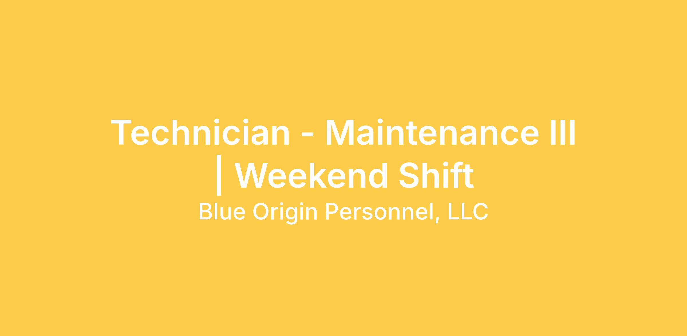 Technician - Maintenance III | Weekend Shift