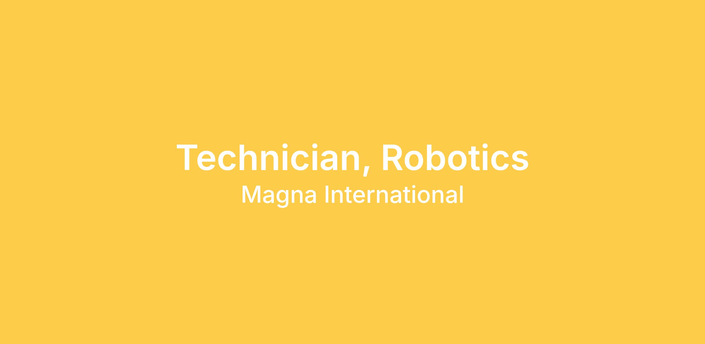Technician, Robotics | Brampton, Ontario, CA | Posted 24 Days Ago | R00214481